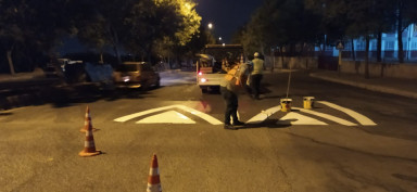 Kahramanmaraş Büyükşehir Belediyesi, Afşin’de gerçekleştirdiği yol çizgi çalışmalarının ardından merkez ilçelerde yaya geçidi, kasis, önce yaya ikonu bakım ve boyama işlemlerine başladı.