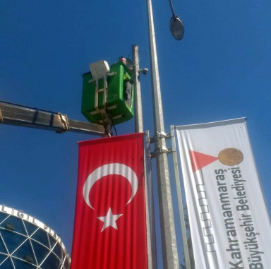 Kahramanmaraş Büyükşehir Belediyesi il genelinde değişik noktalarda bulunan mobese kameralarının bakım ve onarımlarını yapıyor.