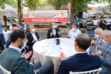 Biz de bu çaba ve gayretlere karşılık marka değerini her zaman yükselterek geliştirmemiz gerekiyor. Ben yıllardan beri söylediğim bir slogan var ve bunu Maraş Kırmızıbiberine yazalım diyorum: Gelin hayatın acılarını birlikte paylaşalım.