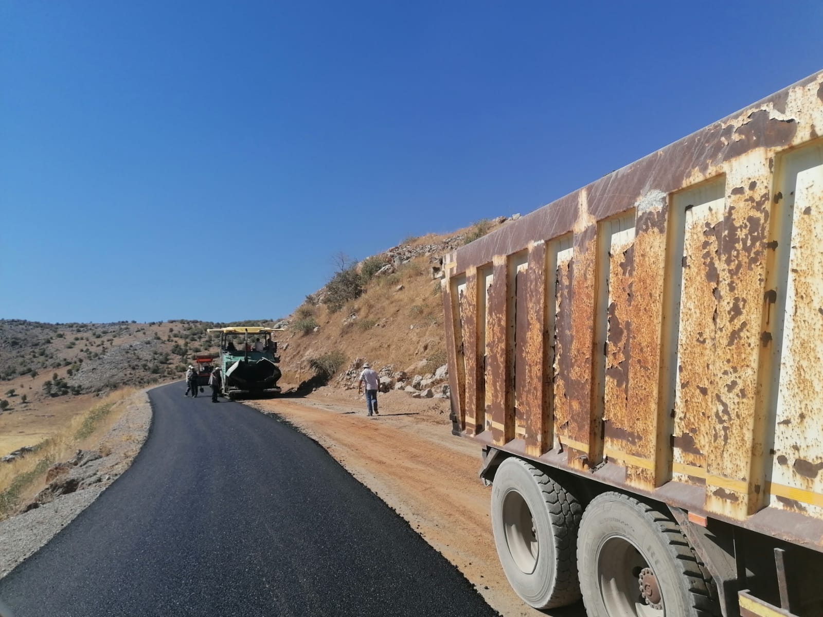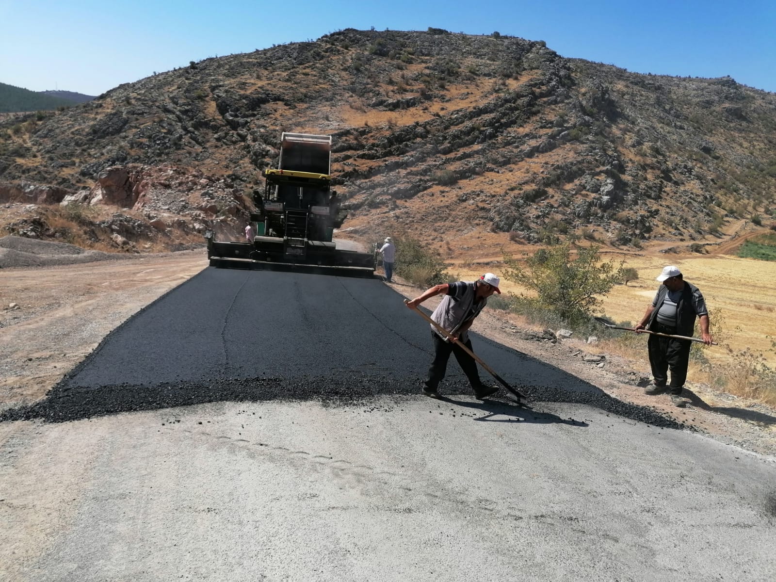 Kahramanmaraş Büyükşehir Belediyesi yol yapım ve onarım çalışmaları kapsamında Türkoğlu İlçesi’nde Kılılı-Yenipınar Yoluna sıcak asfalt serimine başladı.