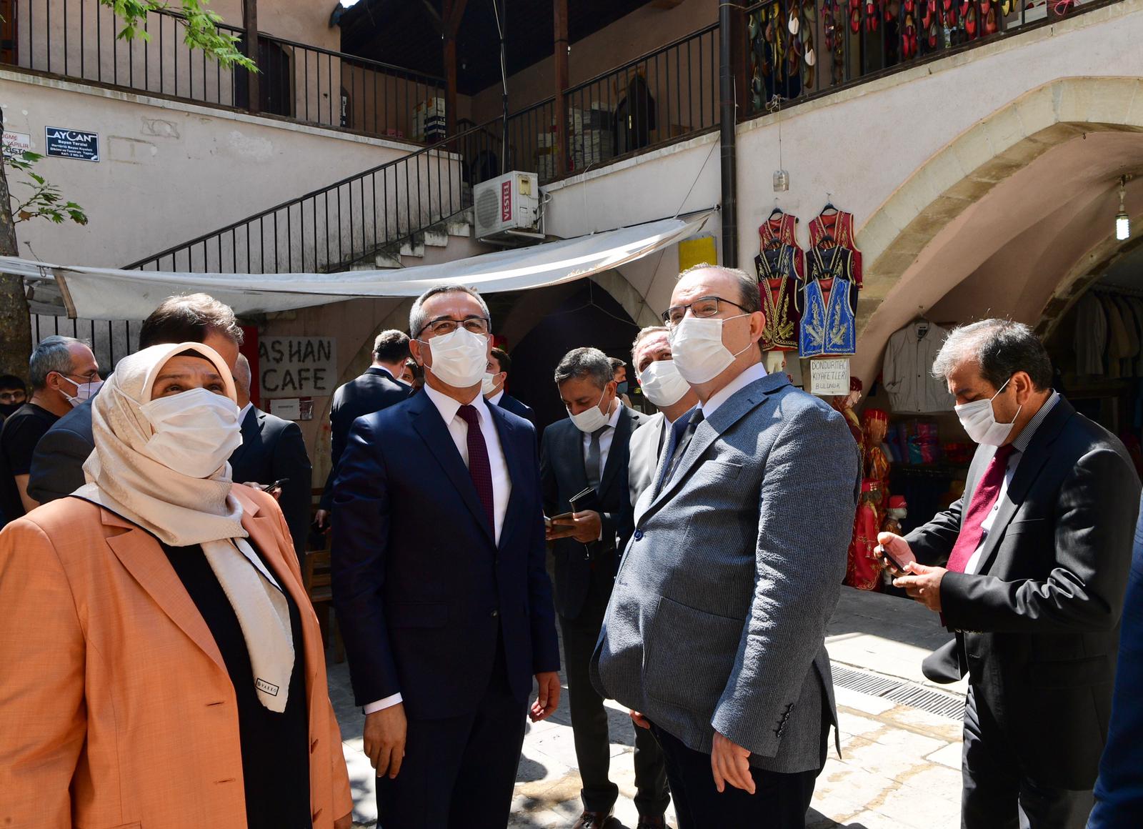 Misafirlerine Büyükşehir Belediyesi tarafından tarihi kapalı çarşıda başlatılan cephe yenileme çalışmalarıyla ilgili de bilgiler aktaran Başkan Güngör şehrin tarihi kimliğine uygun bir çalışma hayata geçirdiklerini belirtti.