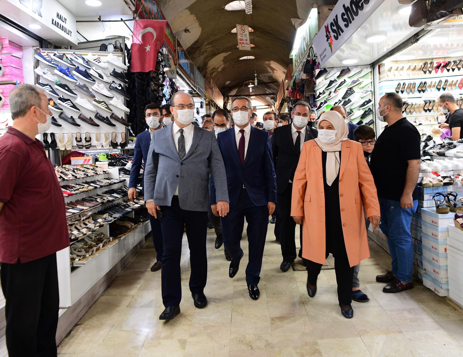 Düzenlenen “Kahramanmaraş Kültür Günü” programı için şehre gelen Kültür ve Turizm Bakan Yardımcısı Dr. Serdar Çam, Yunus Emre Enstitüsü Başkanı Prof. Dr. Şeref Ateş, TİKA Başkanı Serkan Kayalar, Yurtdışı Türkler ve Akraba Topluluklar Başkanı Abdullah Eren, Ak Parti Kahramanmaraş Milletvekili Habibe Öcal ile birlikte Kahramanmaraş’ın yüzlerce yıllık çarşısı Suk-i Maraş’ı gezen Büyükşehir Belediye Başkanı Hayrettin Güngör misafirlerine çarşının tarihçesini anlattı.