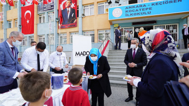 Başkan Güngör, “Sayın Bakanımız Ziya Şelçuk’un sosyal medyadan ilk teneffüsle ilgili bir paylaşımı olmuştu. Biz de ilk teneffüs dondurmasız olmaz demiştik. Okullarımızın açılmasıyla bu vaadimizi yerine getiriyoruz. Öğrencilerimize ve sevgili velilerine afiyet olsun. Bu vesileyle de yeni eğitim öğretim döneminin ülkemize hayırlı olmasını diliyorum” dedi.