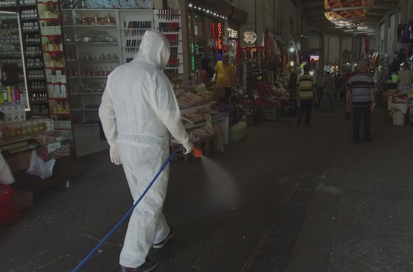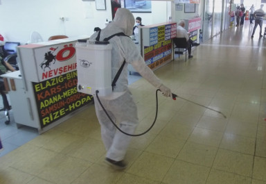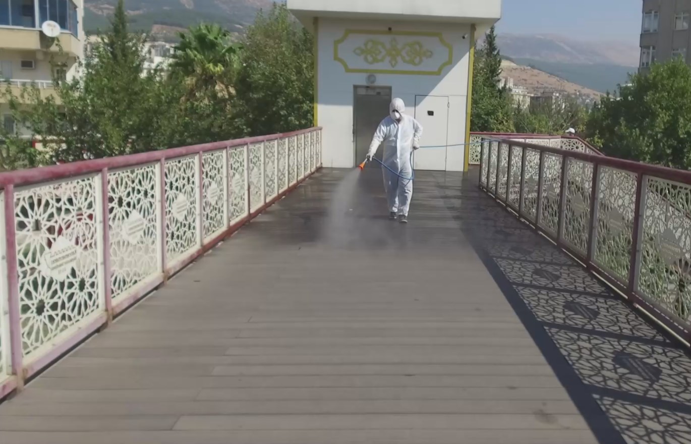 Kahramanmaraş Büyükşehir Belediyesi Çevre Koruma ve Kontrol Dairesi Başkanlığı, il genelinde dezenfeksiyon uygulamalarına aralıksız devam ediyor. Bu kapsamda vatandaşların yoğun kullandığı üst geçitler, kapalı semt pazarları, terminaller, Kapalı Çarşı ve bağlı diğer çarşılar, Demirciler Çarşısı, parklar,sebze ve meyve hali, Rıdvan Hoca Yeraltı Çarşısı, halk ekmek büfeleri, Aile Sağlığı Merkezleri, hastaneler, meydanlar ile banka ATM'lerinde ilaçlama yapılıyor.