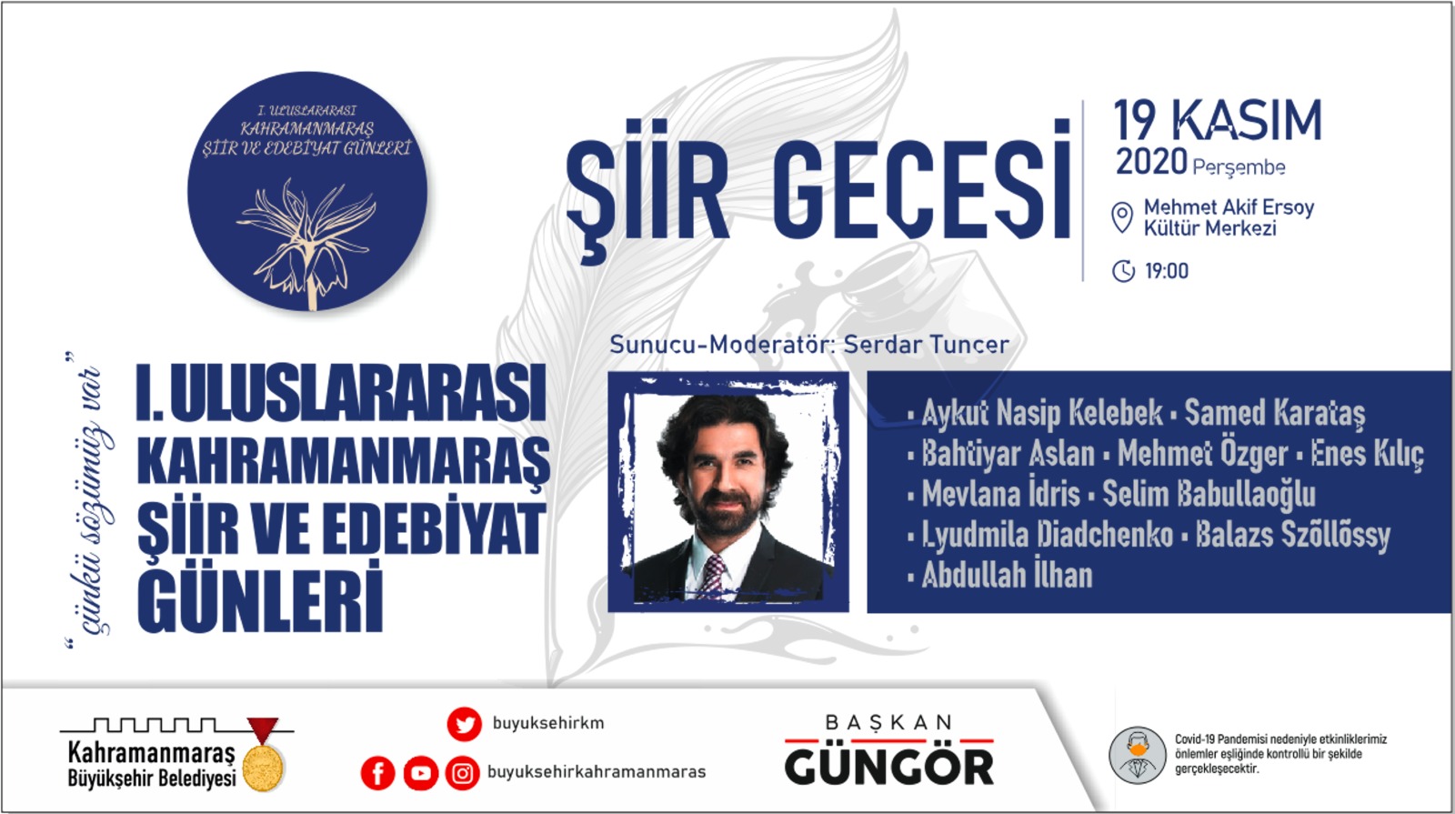 Etkinlikler kapsamında 19 Kasım Perşembe günü ‘Şiir Gecesi’ düzenleneceği de belirtilerek, “Mehmet Akif Ersoy Kültür Merkezi’nde, 19.00’da başlayacak etkinlikte Serdar Tuncer’in de katılımıyla Şiir Gecesi düzenlenecek. Yurt için ve yurt dışından değerli şair ve yazarların da yer alacağı programda Kahramanmaraşlı sanatçıların eserleri seslendirilecek” denildi. Programın kapanış gününde ise Uluslararası Kahramanmaraş Şiir ve Edebiyat Ödülleri sahiplerini bulacak.