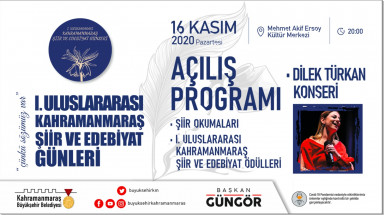 Kahramanmaraş Büyükşehir Belediyesi 1. Uluslararası Şiir ve Edebiyat Günleri başlıyor. 16 – 20 Kasım tarihlerinde 11 ilçede gerçekleştirilecek 40’ın üzerinde etkinlikte şiir ve edebiyat konuşulacak. Şiir, Öykü, Deneme ve Portre Yarışmaları ile Aşık Mahzuni Besteleri Ses Yarışması’nda dereceye girenlere ödülleri verilecek. Yine bir ilk olacak uluslararası etkinlik kapsamında Kahramanmaraş Şiir ve Edebiyat Ödülleri de sahiplerini bulacak.