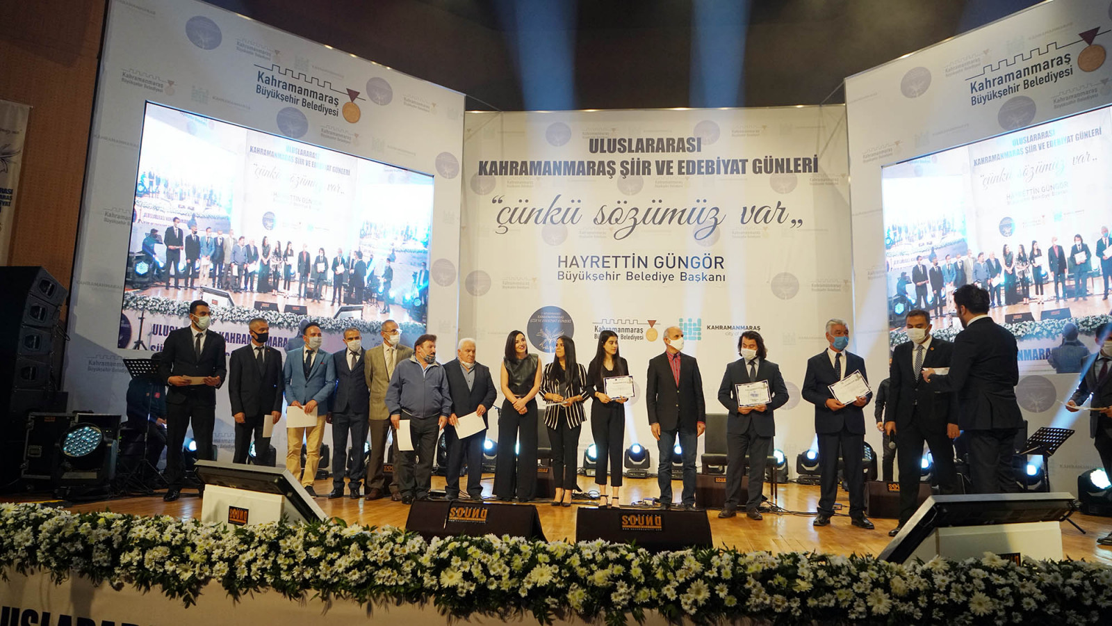 Kahramanmaraş Büyükşehir Belediyesi1. Uluslararası Kahramanmaraş Şiir ve Edebiyat Günleri kapsamında düzenlenen “Aşık Mahzuni Şerif Besteleri Ses Yarışması Ödül Töreni” gerçekleştirildi. Mehmet Akif Kültür Merkezi’ndeki programa Büyükşehir Belediyesi Başkan Vekili Hanifi Toptaş, Genel Sekreter Rüstem Keleş, KSÜ Rektör Yardımcısı Prof. Dr. Kadir Saltalı ile vatandaşlar katıldı. Pandemi tedbirleri kapsamında gerçekleştirilen etkinlikte ilk olarak daha önceki elemelerde belirlenen 10 finalist Aşık Mahzuni Şerif’in eserlerini seslendirdi.