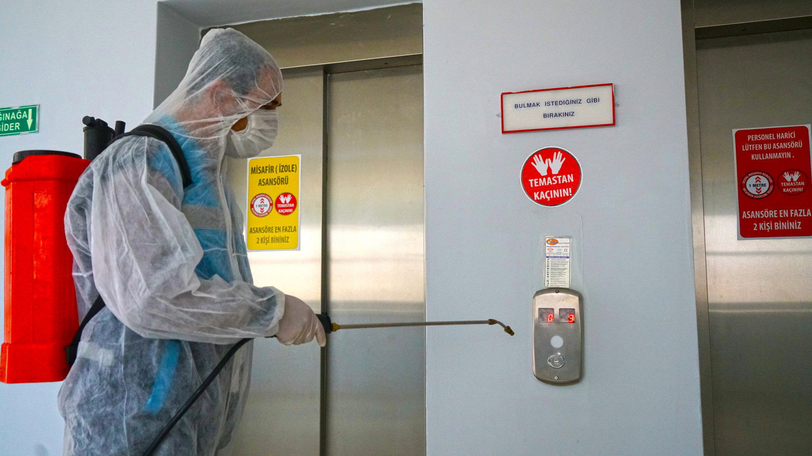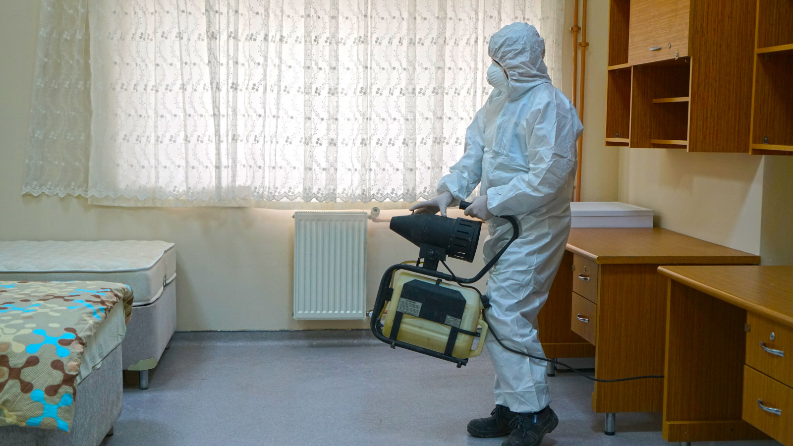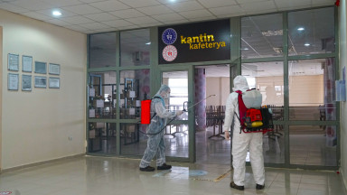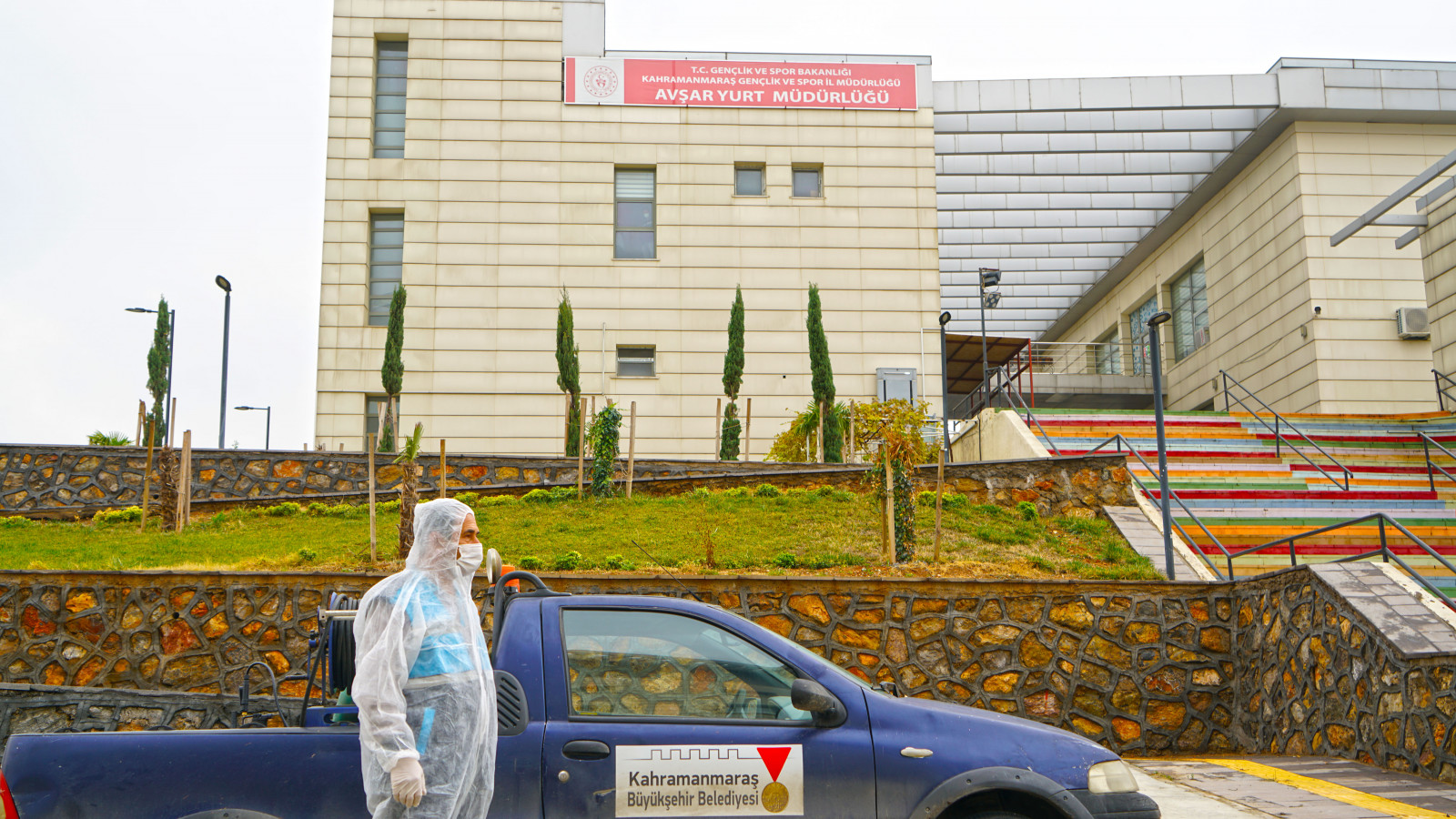 Kahramanmaraş Büyükşehir Belediyesi Covid-19 salgınıyla mücadele kapsamındaki dezenfeksiyon çalışmalarına aralıksız devam ediyor. Çevre Koruma ve Kontrol Dairesi Başkanlığı tarafından yürütülen çalışmalarda, sağlıkçılar, filyasyon ekipleri ve karantinada kalacak vatandaşlara tahsis edilen Kahramanmaraş Sütçü İmam Üniversitesi Avşar Yurdu’nda yer alan,odalar, sosyal ve ortak alanlarda dezenfeksiyon uygulaması gerçekleştirildi. Toplamda 4 blok ve 1 idari binadan oluşan yurtta; oda, tuvalet ve banyoların yanı sıra, yemekhane, asansör ve çamaşırhane gibi ortak alanlar da dezenfekte edildi.