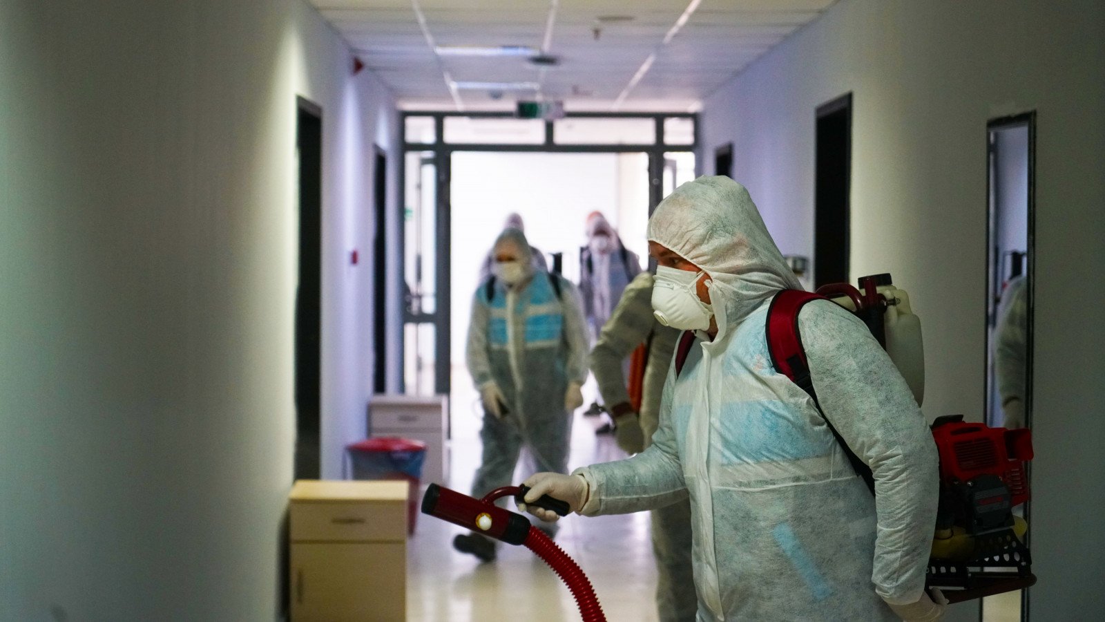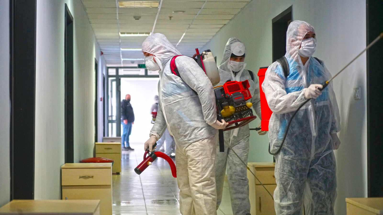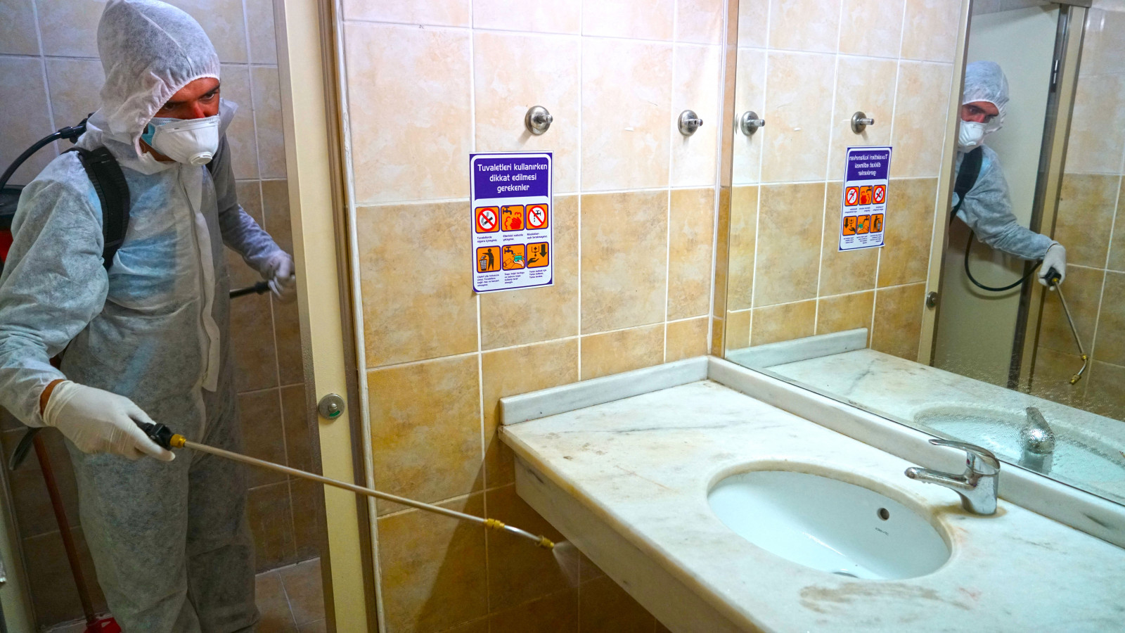 Kahramanmaraş Büyükşehir Belediyesi Covid-19 salgınıyla mücadele kapsamındaki dezenfeksiyon çalışmalarına aralıksız devam ediyor. Çevre Koruma ve Kontrol Dairesi Başkanlığı tarafından yürütülen çalışmalarda, sağlıkçılar, filyasyon ekipleri ve karantinada kalacak vatandaşlara tahsis edilen Kahramanmaraş Sütçü İmam Üniversitesi Avşar Yurdu’nda yer alan,odalar, sosyal ve ortak alanlarda dezenfeksiyon uygulaması gerçekleştirildi. Toplamda 4 blok ve 1 idari binadan oluşan yurtta; oda, tuvalet ve banyoların yanı sıra, yemekhane, asansör ve çamaşırhane gibi ortak alanlar da dezenfekte edildi.