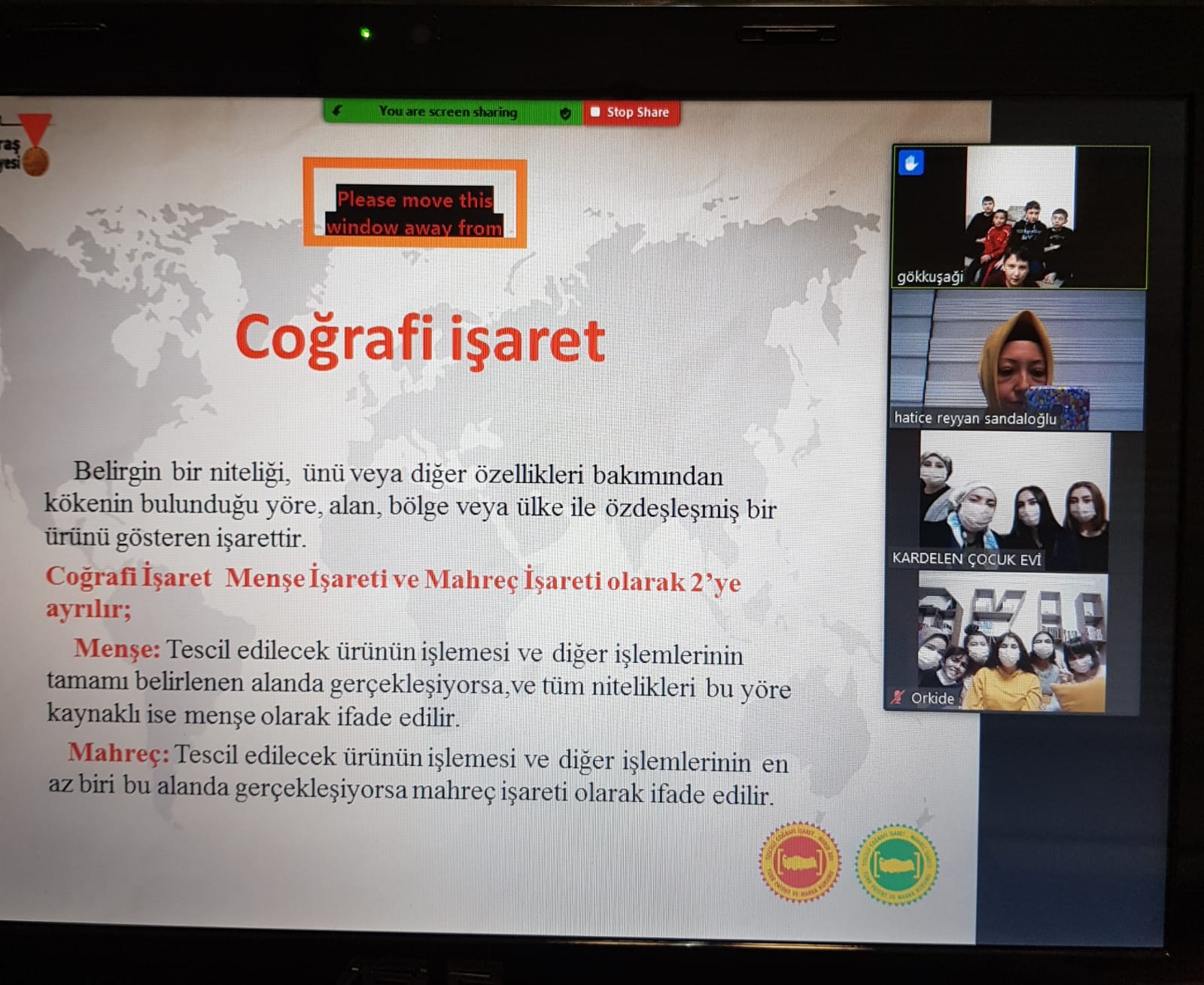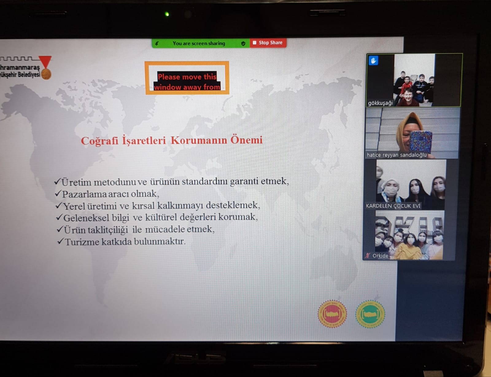 Kahramanmaraş Büyükşehir Belediyesi Yerli Malı Haftası münasebetiyle Coğrafi İşaretin Önemine ilişkin öğrencilere online ders verdi. Büyükşehir Belediyesi Mahalle ve Tarım Hizmetleri Dairesi Başkanlığı tarafından gerçekleştirilen online derste Aile Çalışma ve Sosyal Hizmetler İl Müdürlüğü işbirliği ile Çocuk Hakları Komitesine üye 28 öğrenciye Coğrafi İşaretin önemi anlatıldı.