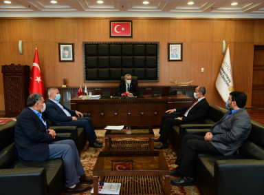 Kahramanmaraş Büyükşehir Belediye Başkanı Hayrettin Güngör, Minibüsçüler ve Özel Halk Otobüsçüleri Odası Başkanı Mustafa Baltacı ve yönetim kurulu üyelerini makamında ağırladı. Pandemi sürecinin getirdiği kısıtlılıklara rağmen fedakarca çalışma yürüten esnafa teşekkür eden Büyükşehir Belediye Başkanı Hayrettin Güngör, “Ben öncelikle oda başkanımızın nezdinde, tüm esnafımıza ve şoförlerimize yürekten teşekkür ediyorum. Pandemi süreci çerçevesinde, toplu taşımayı hiç aksatmadan eksiksiz olarak yerine getirdiler” diye konuştu.