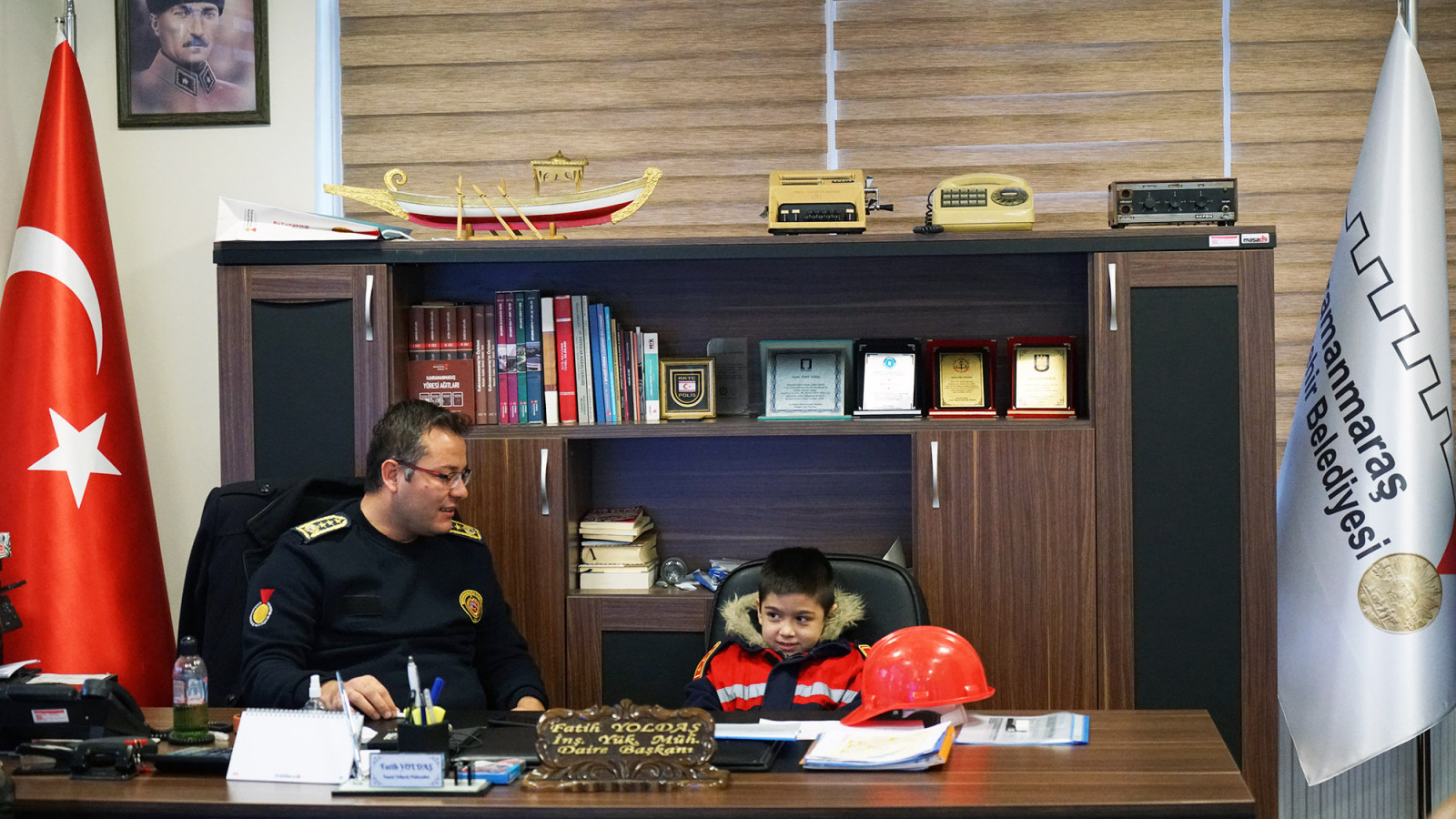 Büyükşehir Belediyesi İtfaiye Daire Başkanı Fatih Yoldaş ziyarete ilişkin, “Bugün çok özel misafirlerimizi ağırladık. Kahramanmaraşlı Şehidimiz Haşim Yenigül’ün eşi Leyla Hanım ve çocukları ziyaretimize geldiler. Şehidimizin oğullarının en büyük hayalinin İtfaiyeci olarak can kurtarmak olduğunu öğrendik. Onlar bugün bizlerle aynı üniformayı giyerek fahri meslektaşımız oldular” ifadelerini kullandı.