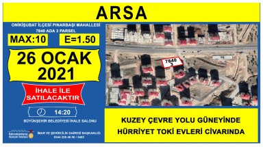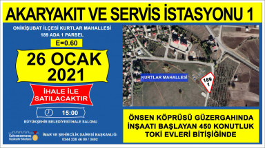 Büyükşehir Belediyesi il genelinde muhtelif yerler bulunan taşınmazların satışına ilişkin ihaleyi 26 Ocak 2021 tarihinde Encümen Salonu’nda gerçekleştirecek.