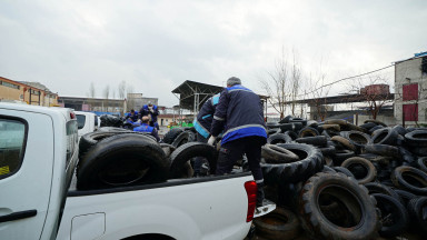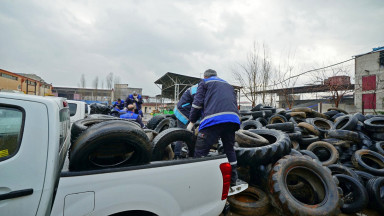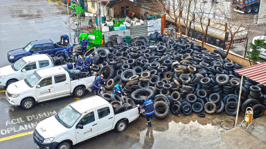 Büyükşehir Belediyesi, çevre çalışmaları kapsamında topladığı 20 ton atık araç lastiğini geri dönüşüme kazandırıyor.