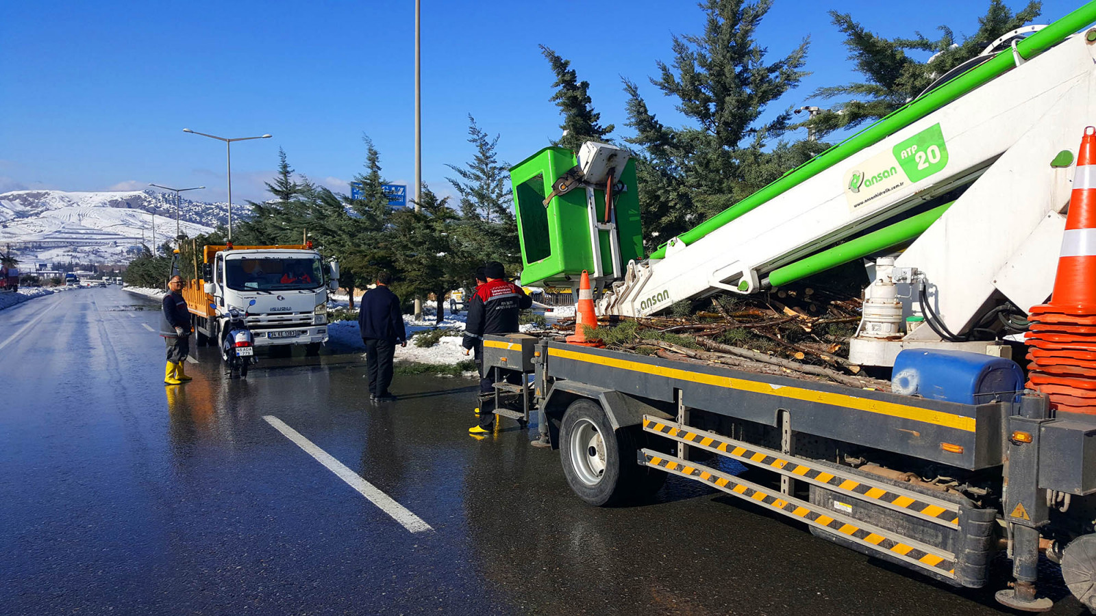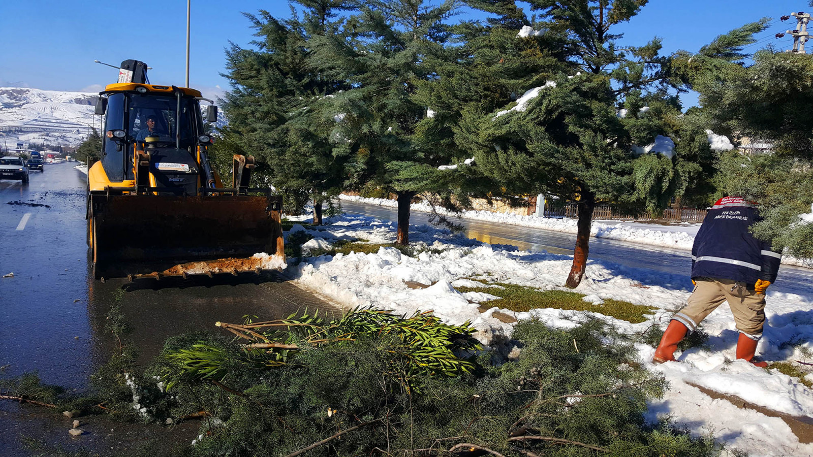 Kahramanmaraş Büyükşehir Belediyesi, tüm şehirde aniden etkili olan kar yağışıyla birlikte harekete geçti. Fen İşleri Dairesi Başkanlığı koordinesindeki ekipler, yoğun yağış sebebiyle kırılarak çevreye saçılan ağaç dallarını temizledi. İl genelinde onlarca noktada devrilen yüzlerce ağaca ve kırılan dallara müdahale eden ekiplere, budama platformları, yükleme kamyonları ve iş makinaları eşlik etti. Çalışmalarda, vatandaşlar için tehlike oluşturan dallar kesilerek güvenli hale getirildi. Gelen ihbarları değerlendiren ekipler, Necmettin Erbakan Bulvarı ve Onikişubat Bisiklet Yolu (Üngüt Mevkii) arasındaki 7 Kilometrelik arterde çalışmalarını tamamladı.