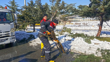 Büyükşehir Belediyesi, şehir genelinde etkili olan yoğun kar yağışı sebebiyle kırılan ağaç dallarını temizledi.