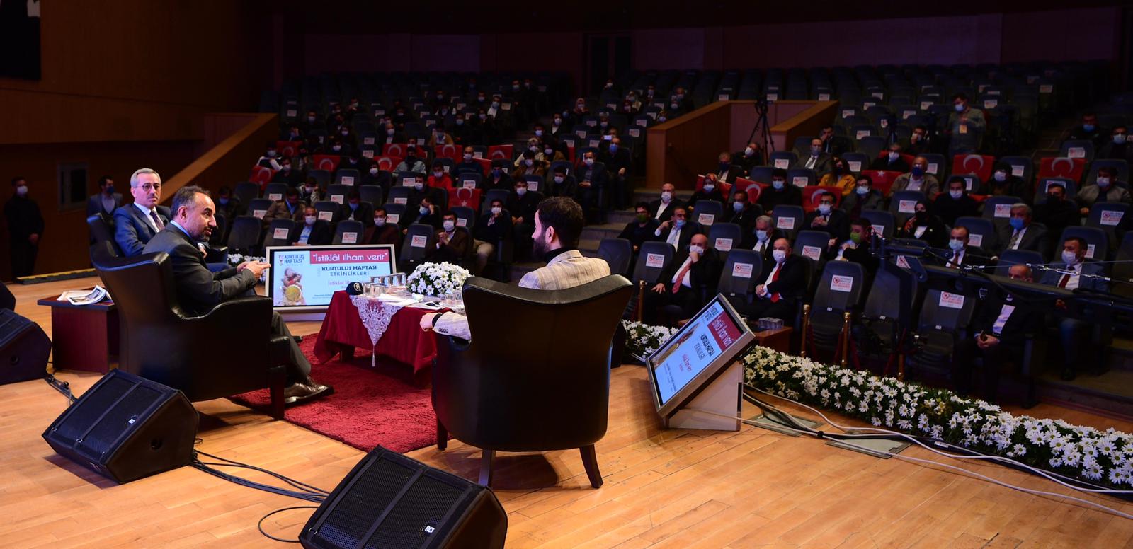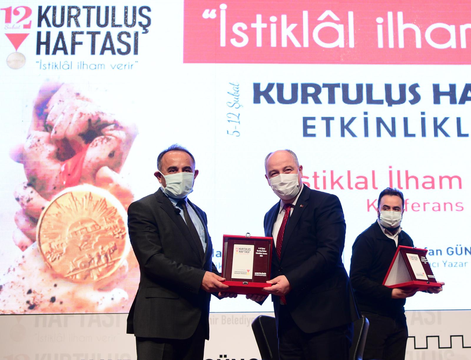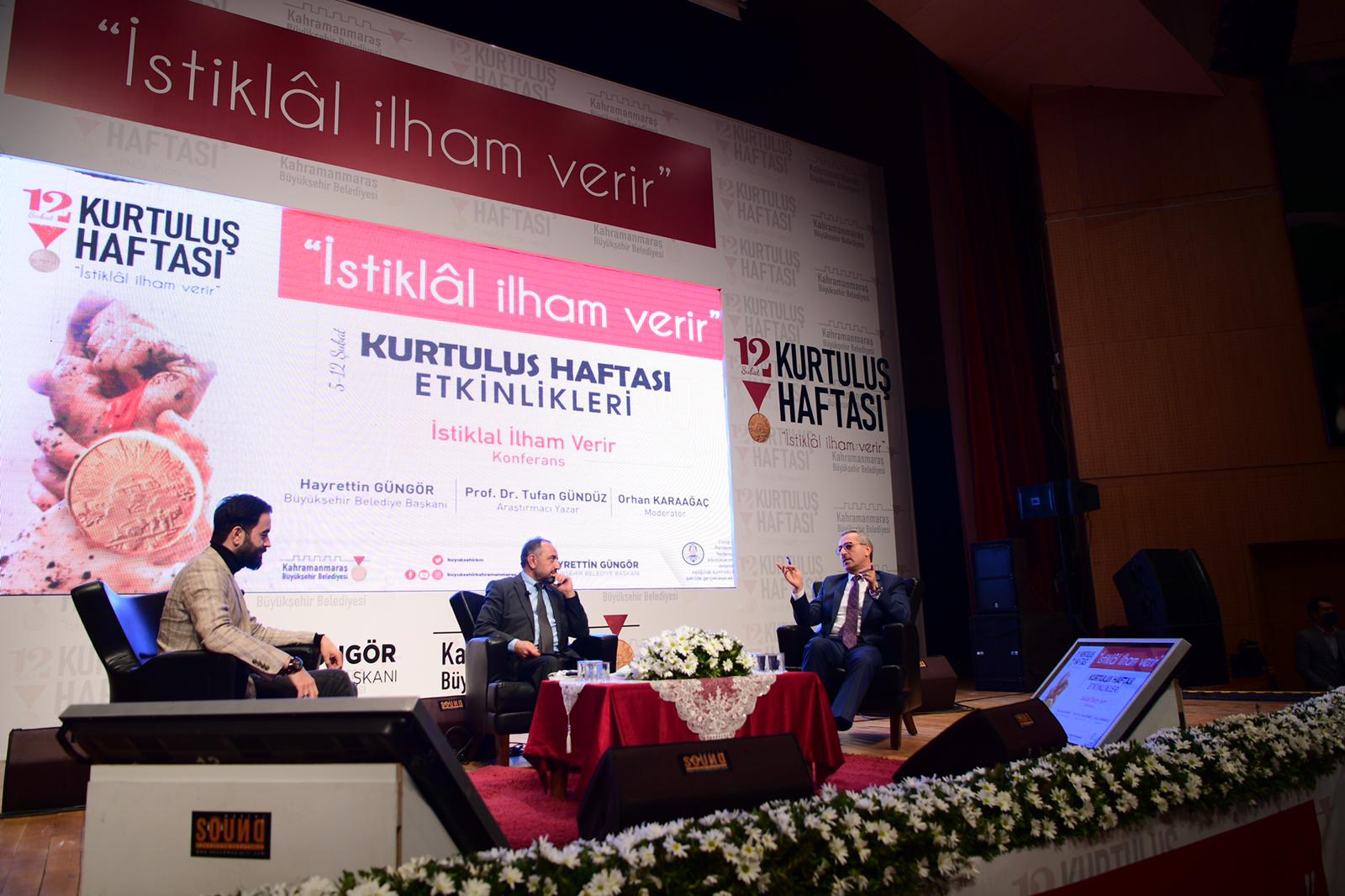 Kahramanmaraş Büyükşehir Belediyesi 12 Şubat Kurtuluş Haftası etkinlikleri kapsamında İstiklal İlham Verir konferansı gerçekleştirildi. Mehmet Akif Ersoy Kültür Merkezi’nde gerçekleştirilen programa Büyükşehir Belediye Başkanı Hayrettin Güngör, Vali Ömer Faruk Coşkun, il müdürleri, meclis üyeleri ve vatandaşlar katıldı. Moderatörlüğünü Orhan Karaağaç’ın gerçekleştirdiği programda Araştırmacı Yazar Prof. Dr. Tufan Gündüz ve Büyükşehir Belediye Başkanı Hayrettin Güngör, şehrin istiklal mücadelesi hakkında konuştu.