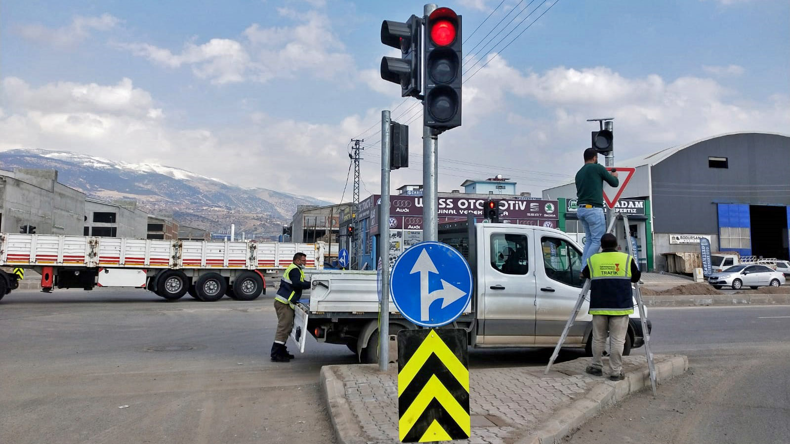 Kahramanmaraş Büyükşehir Belediyesi, trafik güvenliğini artıracak çalışmalara aralıksız devam ediyor. Bu kapsamda Yeni Sanayi Sitesi ve Kuzey Çevre Yolu bağlantısı olarak kullanılan artere akıllı kavşak kazandırıldı. Ulaşım Hizmetleri Dairesi Başkanlığı koordinesindeki ekipler tarafından bölgedetrafik güvenliğinin sağlanması adına sinyalizasyon çalışmaları, dikey trafik levha işaretlemelerini tamamladı ve kavşak trafiğe açıldı.