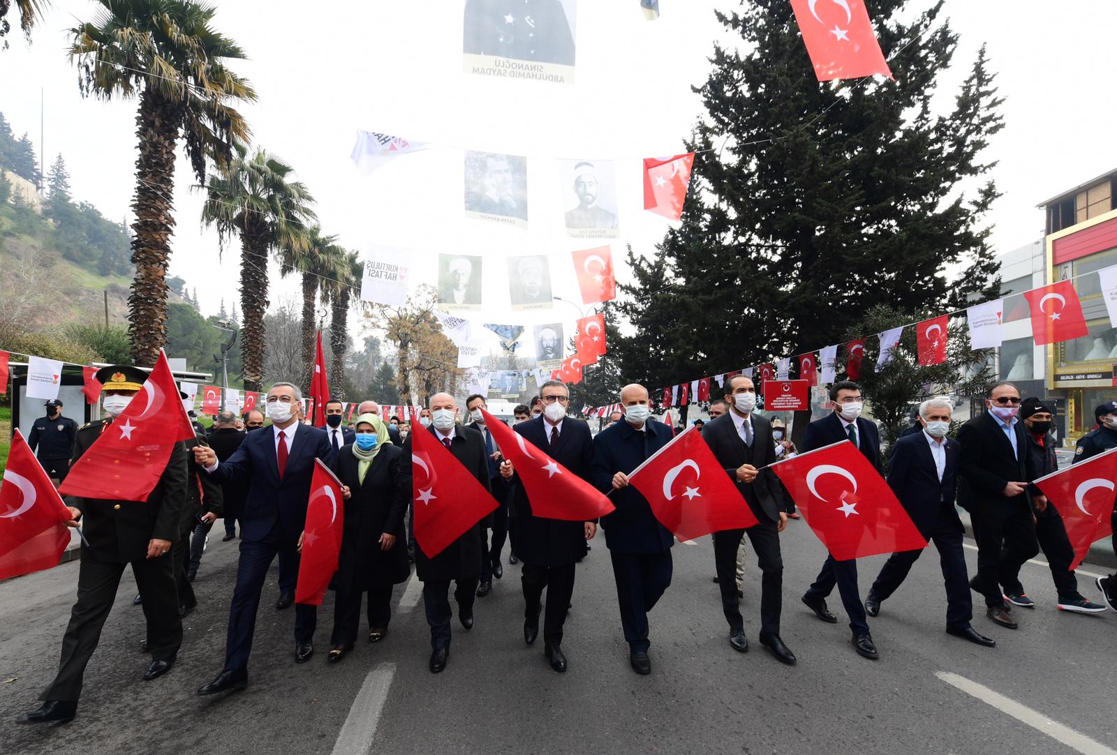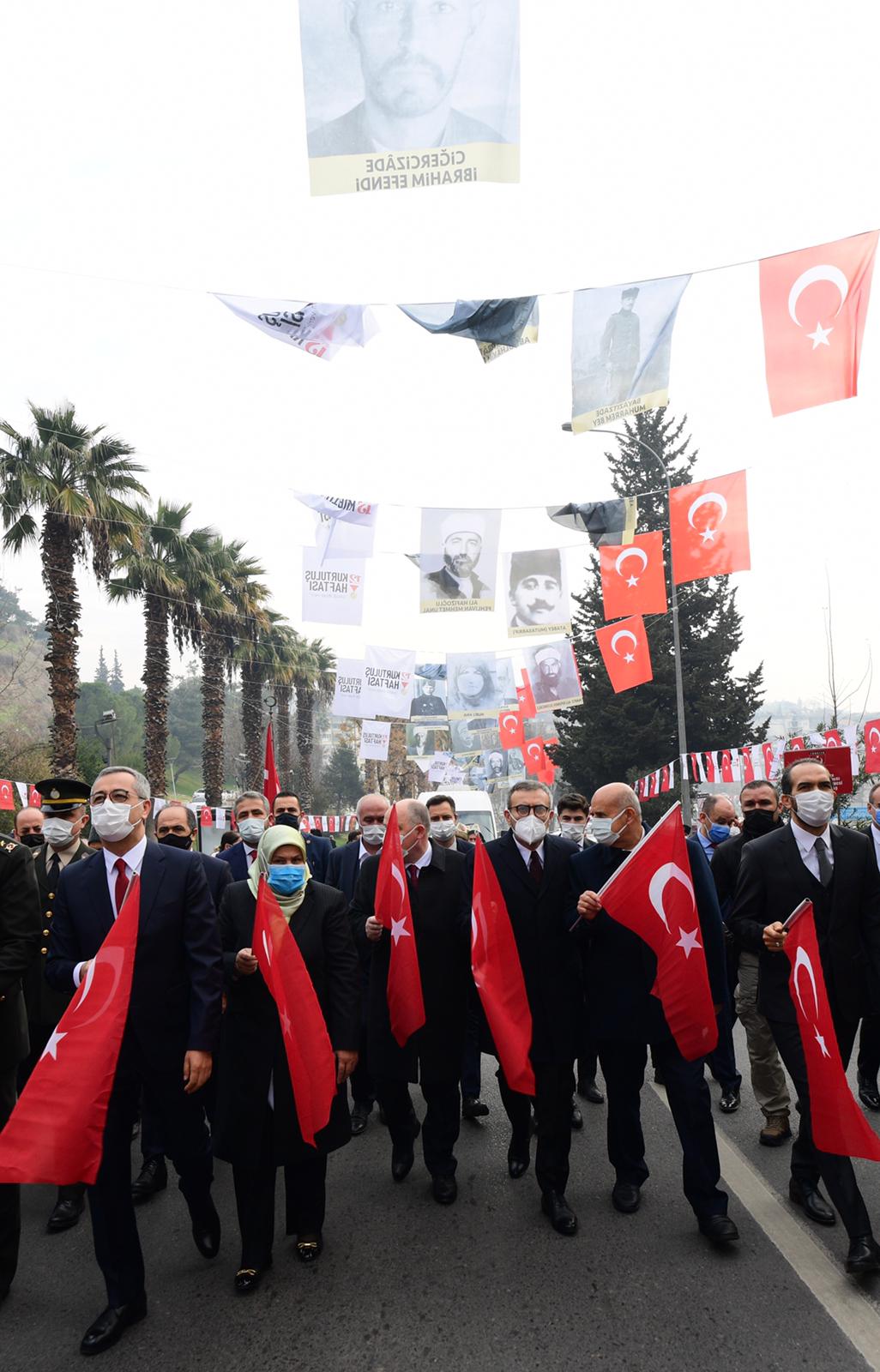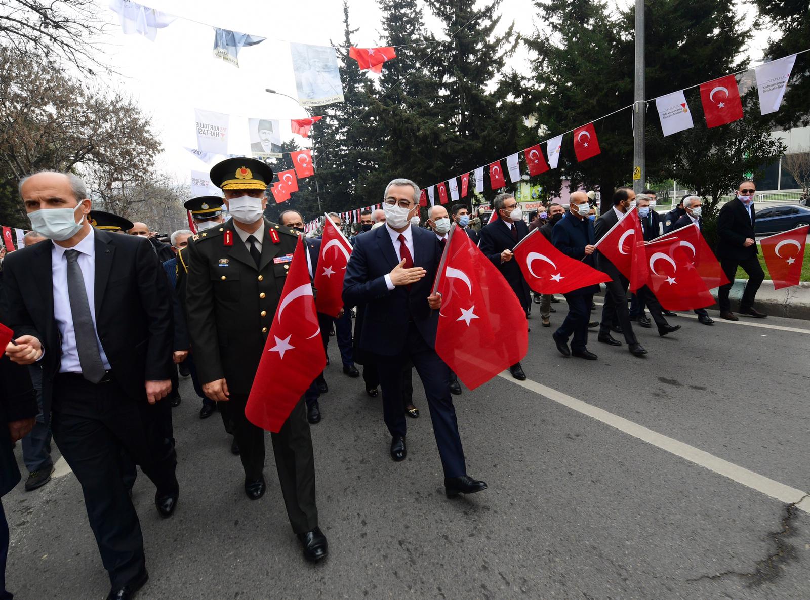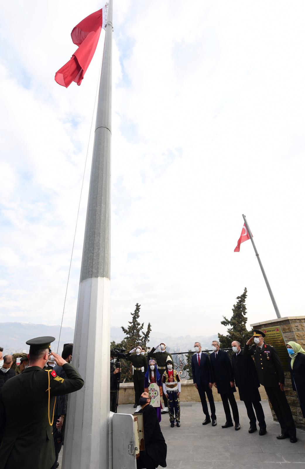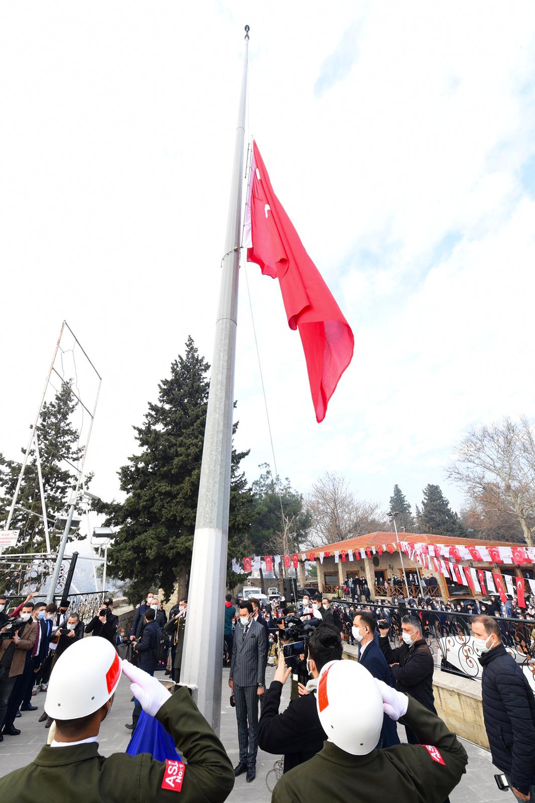 Milli Mücadele’nin 101. yıldönümünde Tarihi Kahramanmaraş Kalesi’nde düzenlenen programda Büyükşehir Belediye Başkanı Hayrettin Güngör, kırmızı şeritli İstiklal Madalyası’nı şanlı Türk Bayrağımıza taktı.