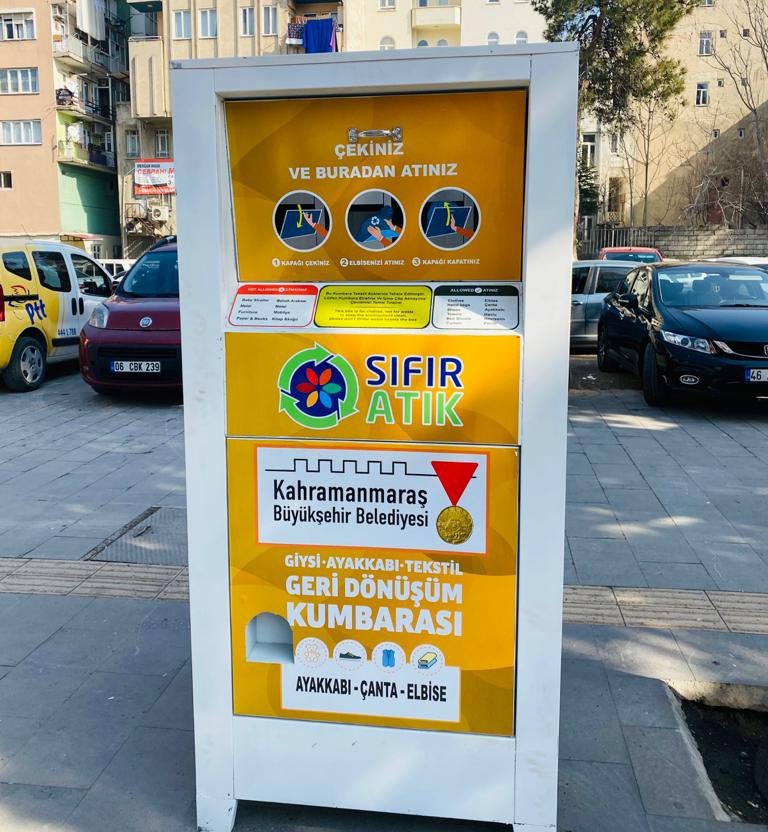 Kahramanmaraş Büyükşehir Belediyesi Sıfır Atık Projesi kapsamında şehir genelinde konumlandırdığı ‘Kıyafet Kumbaraları’ ile geri dönüşüme destek olacak. Büyükşehir Belediyesi tarafından kıyafetler başta olmak üzere çanta, ayakkabı, nevresim ve perde gibi tekstil ürünlerinin de toplanacağı kıyafet kumbarasından şu ana kadar 56 adet yerleştirildi. Ana cadde ve bulvarlar üzerine yerleştirilen kıyafet kumbaraları toplamda 300 adet olacak. Projeyle, tekstil ürünlerinin üretimi sebebiyle oluşan karbon ayak izinin önlenmesi ve ekosistemin korunması hedefleniyor.