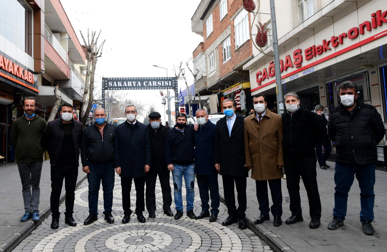 Büyükşehir Belediye Başkanı Hayrettin Güngör, “Bugün, AK Parti İl Başkan Yardımcımız Ali Köfte, Belediye Meclis Üyelerimiz ve Mahalle Muhtarımız ile birlikte gerçekleştirdiğimiz Sakarya Caddesi ziyaretimizde, esnaflarımızla bir araya geldik. Sağolsun burada bulunan esnaflarımız ve hemşehrilerimizle samimi bir sohbet etmek, çaylarını içmek imkânı hâsıl oldu. Her mahallemizde olduğu gibi burada da kendine özgü dinamikler var, buraya has ihtiyaçlar var. Kahramanmaraş Büyükşehir Belediyesi olarak gerek Dulkadiroğlu Belediyemiz ve diğer kurumlarımızla inşallah hemşehrilerimizin taleplerini karşılamak için çalışmaya devam edeceğiz. Tüm paydaşlarımızla hemşehrilerimizin hizmetindeyiz” ifadelerini kullandı.