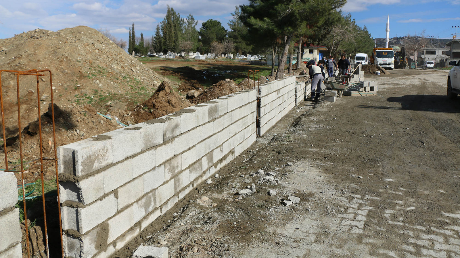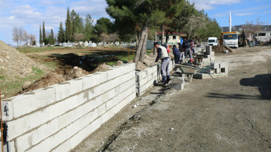 Kahramanmaraş Büyükşehir Belediyesi, mahallelerdeki inşa faaliyetlerini aralıksız sürdürüyor. Çalışmalar kapsamında, Fen İşleri Dairesi Başkanlığı koordinesindeki ekipler Dulkadiroğlu İlçesi Elmalar Mahallesi giriş-çıkışını sağlayan menfezin inşasının ardından, mahalle mezarlığı çevre duvarı çalışmalarına başladı. Devam eden çalışmalarda, mahallenin korumasız halde duran mezarlığının çevresine 400 metrelik duvar örülerek tahkim ediliyor.
