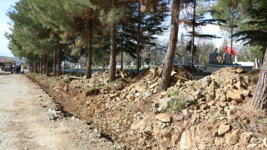 Kahramanmaraş Büyükşehir Belediyesi, Elmalar Mahallesi’nde yapımı tamamlanan menfezin ardından, mezarlık çevre duvarı çalışmaları gerçekleştiriyor. Mahalle Muhtarı Arık, “Büyükşehir, mahallemiz her ihtiyaç duyduğunda yanımızda oldu, teşekkür ediyoruz” dedi.
