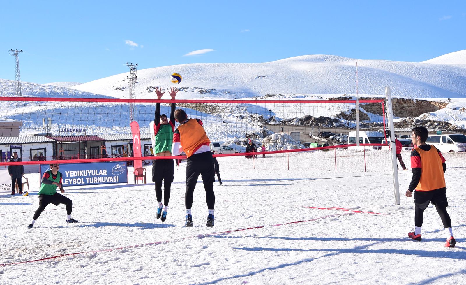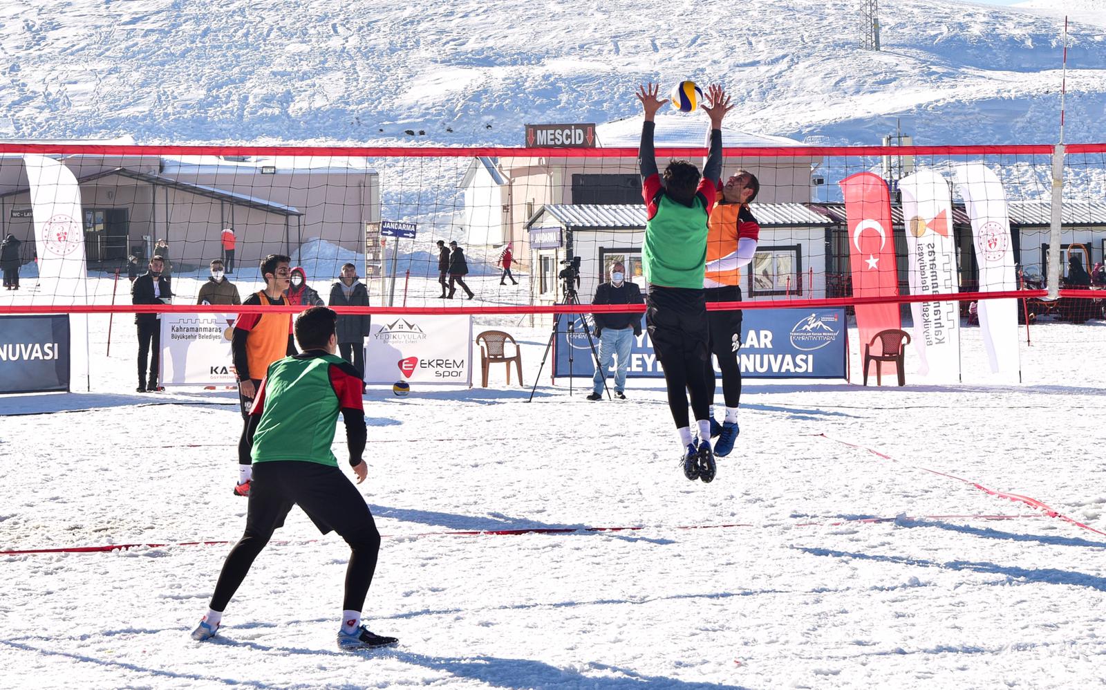 Kahramanmaraş Büyükşehir Belediyesi tarafından Yedikuyular Kayak Merkezi’nde “Kar Voleybolu Turnuvası” düzenlendi. 16 takım ve 32 yarışmacının katılımıyla gerçekleştirilen turnuva, şehrin bu branşta düzenlenen ilk turnuvası olma özelliği taşıyor. Başkan Güngör, “Yedikuyular turizmle olduğu kadar, sporla da ön planda olacak” dedi.