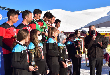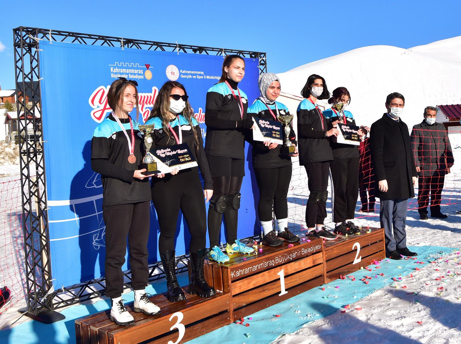 Kahramanmaraş Büyükşehir Belediyesi ve Gençlik ve Spor İl Müdürlüğü işbirliğiyle  “Kar Voleybolu Turnuvası” düzenlendi. Türkiye’deki önemli kış turizmi ve kar sporu tesisleri arasında yer alan Yedikuyular Kayak Merkezi’nde gerçekleştirilen etkinliğe toplamda 16 takım ve 32 yarışmacı katıldı. Kar kalınlığının yer yer 100 santimetreyi geçtiği tesiste takımlar kıyasıya rekabet etti. Pandemi tedbirleri çerçevesinde gerçekleştirilen etkinliğin bu spor branşında Kahramanmaraş’ta düzenlenen ilk turnuva olduğu ifade edildi. Kahramanmaraş’ın düşman işgalinden kurtuluşunun 101. Yıl dönümü münasebetiyle turnuvada yarışan sporcular, madalyanın yanı sıra “İstiklal Kupası” ile ödüllendirildi. Düzenlenen turnuvada, bayanlar kategorisinde Damla ve Fatmanur ikilisi birinci, Mine ve Sudenaz ikilisi ikinci olurken üçüncülüğü Nurgül ve Özlem ikilisi paylaştı. Bayanlar kategorisinde dereceye giren sporculara ödülleri Gençlik ve Spor İl Müdürü Cemil Boz tarafından verildi. Erkekler kategorisinde ise Yusuf Can ve Süleyman birinci olurken, Gürbüz ve Can Bartu ikinci, Selçuk ve Milcan ikilisi ise üçüncü seçildi. Erkekler kategorisinde dereceye giren sporcular, ödüllerini Kahramanmaraş Büyükşehir Belediye Başkanı Hayrettin Güngör’ün elinden teslim aldı.