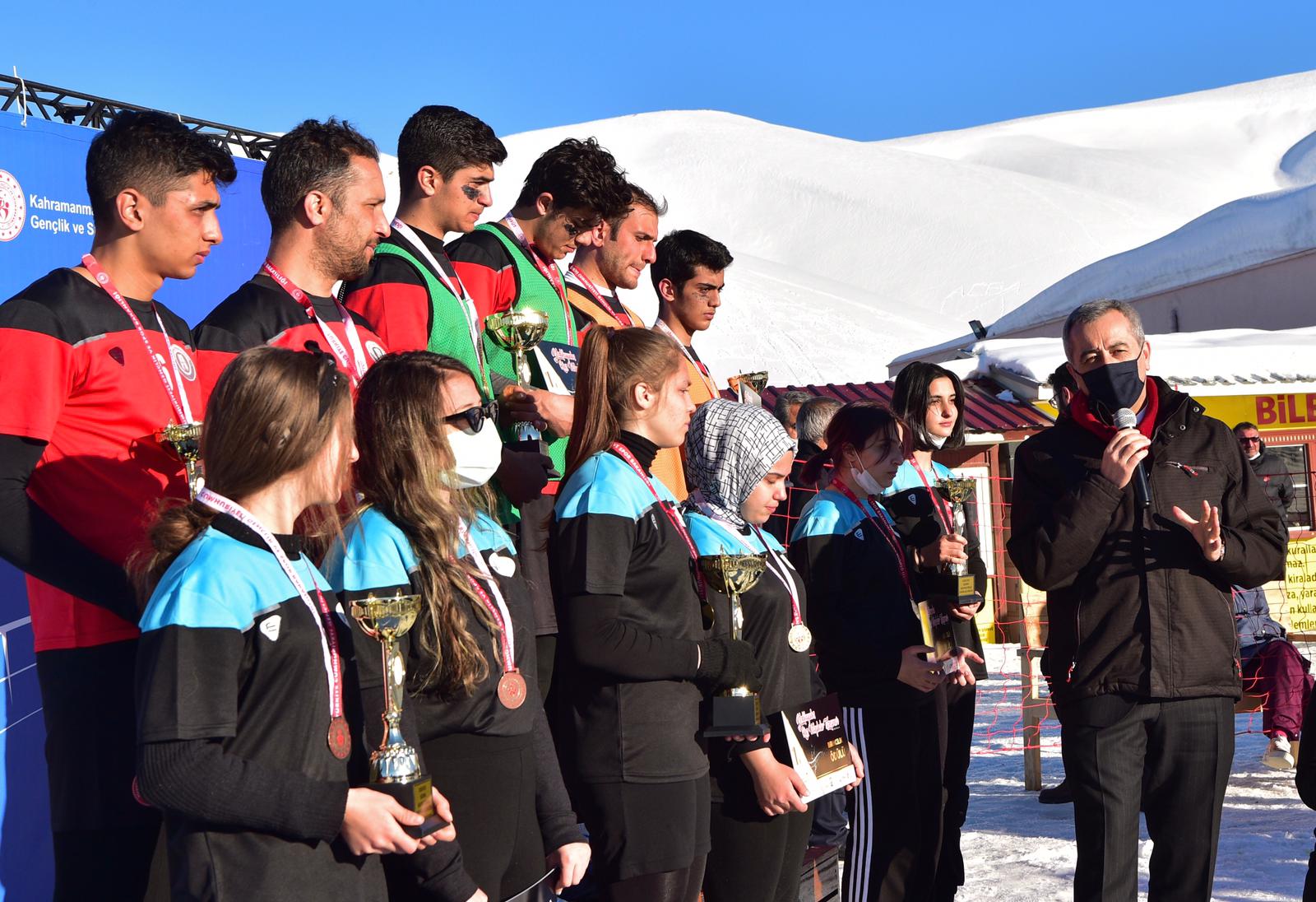 Gençlik ve Spor İl Müdürü Cemil Boz ise etkinliğe ilişkin, “Kar Voleybolu Turnuvamızda İl Müdürlüğümüz bünyesinde uzman eğitmenlerimizce yetiştirilen genç sporcularımız yarıştı. Onların gösterdikleri başarılara ve potansiyellerine şahit olmak, bu tip etkinliklerin önemini ortaya koyuyor. Kahramanmaraş Büyükşehir Belediyesi ile sağladığımız yüksek koordinasyon ile spor faaliyetlerini her geçen gün artırmaya, Kahramanmaraş’ımızdan başarılı sporcular yetiştirmeye gayret gösteriyoruz. Buradan bir kez daha etkinliğin büyük emek sahibi ve mimarı Kahramanmaraş Büyükşehir Belediye Başkanımız Hayrettin Güngör’e ve tüm belediyemize teşekkür ediyorum” açıklamalarında bulundu.
