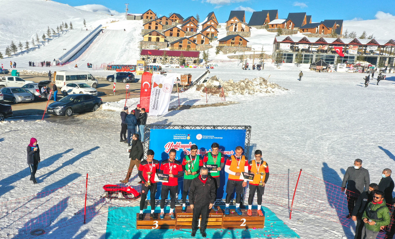 Turnuva ödül töreninde konuşan Başkan Güngör, “Kahramanmaraş Büyükşehir Belediyemiz ve Gençlik ve Spor İl Müdürlüğümüz tarafından düzenlediğimiz Kar Voleybolu Turnuvası şehrimiz için bir ilk oldu. Yedikuyular Kayak Merkezi’nde alt ve üst yapı yatırımlarımızla burayı çevre iller dâhil en hızlı ulaşılabilir merkez haline getirmek imkânı hâsıl oldu. Tabii inşallah, bu tesisimiz pist çeşitliliği, telesiyejleri, bungalov evleri, bedesten çarşısı gibi teknik turistik yatırımların yanı sıra sportif faaliyetlerle de ön plana çıkacak. İlerleyen günlerde özellikle komşu şehirlerimizden misafirlerimizi hem turistik hem sportif bir cazibe merkezi olması münasebetiyle, tesisimizde ağırlamış olacağız” ifadelerini kullandı.