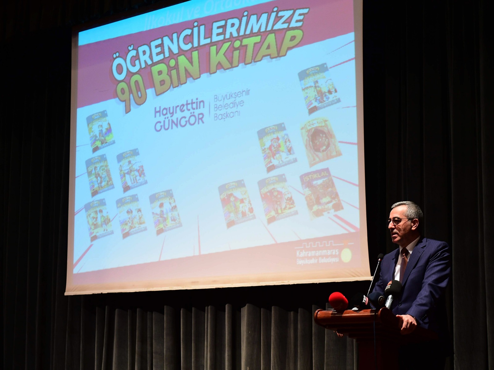 Kahramanmaraş Büyükşehir Belediyesi tarafından ilk ve ortaokul öğrencileri için hazırlanan 101 bin adet kitap dağıtım töreninde konuşan Başkan Hayrettin Güngör, “Milli mücadelemizin 101. yılında, yaklaşık 750 ilk ve ortaokulumuzdan 101 bin öğrencimize kitaplarımızı hediye ediyoruz. Vakti geldiğinde görevi eksiksiz yapan kahramanlarımızın tanınması geleceğimizin teminatı olan nesillerimizin de büyüyüp yetiştiklerinde vazifelerini en iyi şekilde yapmalarını sağlayacaktır” dedi.