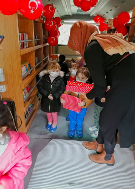 Kahramanmaraş Büyükşehir Belediyesi bünyesinde faaliyet gösteren “Gezici Kütüphane” yeniden öğrencilerle bir araya geldi. Pandemi kısıtlılıkları ve hava şartları nedeniyle ara verilen Gezici Kütüphane, son olarak Onikişubat ilçesinde bulunan Atom Karınca Anaokulu öğrencilerine ziyaret gerçekleştirdi. Kütüphaneler Şubesi Müdürlüğü koordinesindeki Gezici Kütüphane’de, miniklerle masal ve okuma saatleri etkinliği düzenlendi. Temel eserlerden hikâyelere kadar onlarca kitabın yer aldığı kütüphanenin, bir sonraki rotasının 6 Nisan Salı günü Onikişubat ilçesi Simya Koleji, 7 Nisan Çarşamba günü Pazarcık İlçesi’nde Evri Pınarbaşı Ortaokulu ve Çöçelli İlkokulu olacağı bildirildi.