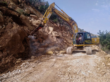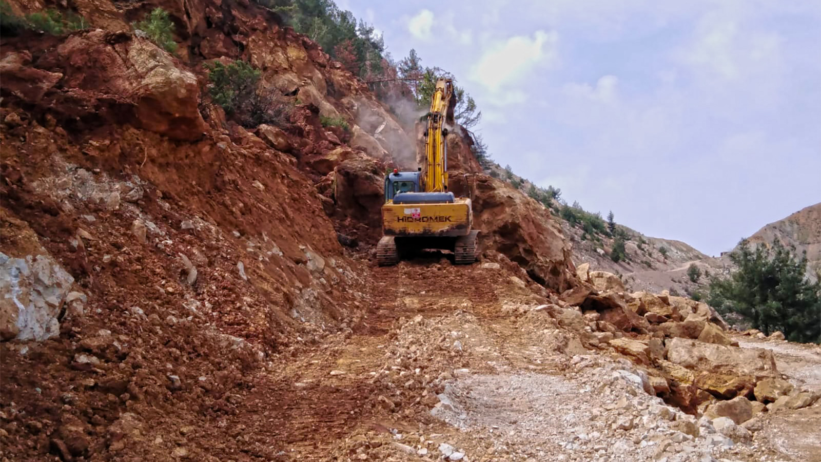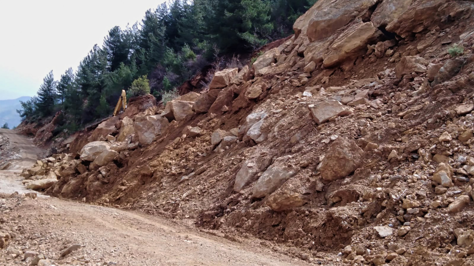 Kahramanmaraş Büyükşehir Belediyesi, Onikişubat Kısıklı mahallesinin heyelan sonucu kapanan yolunda, temizlik ve yol açma çalışmaları gerçekleştiriyor.