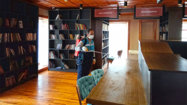 Kahramanmaraş Büyükşehir Belediyesi, pandemiyle mücadele kapsamında kütüphane ve müzelerde dezenfekte çalışması gerçekleştirdi.