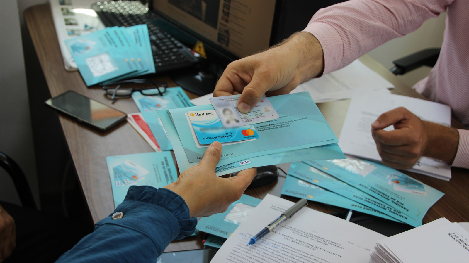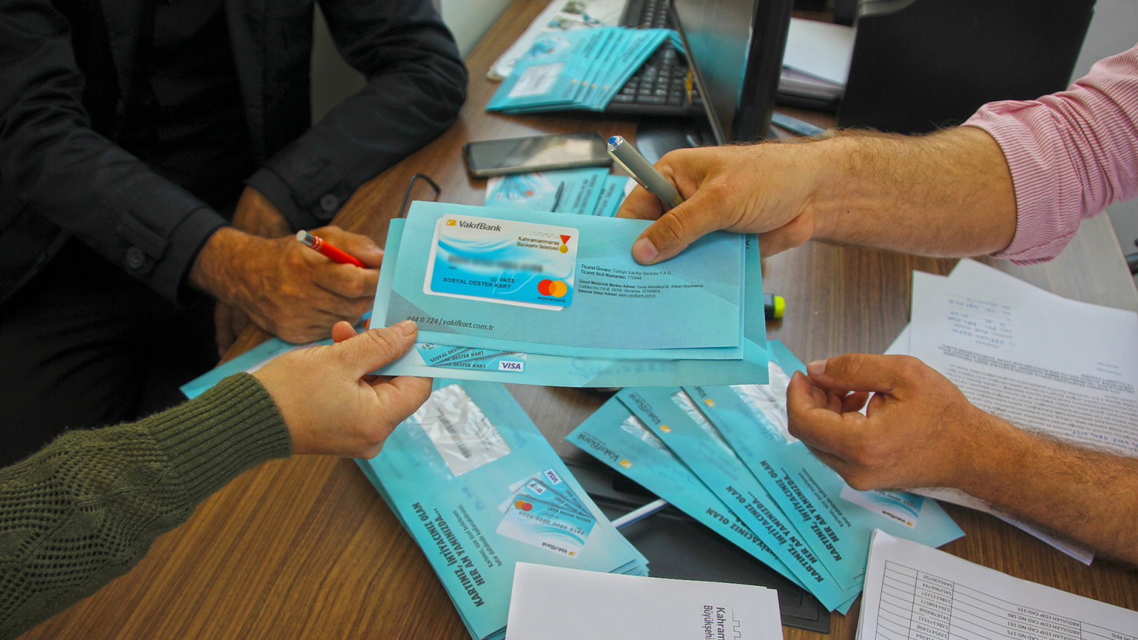 Kahramanmaraş Büyükşehir Belediyesi tarafından başlatılan ‘Sosyal Destek Kart’ projesinde ihtiyaç sahibi ailelere ulaşılmaya başlandı. Muhtarlıklar aracılığıyla dağıtılan kartlarla aileler, pos cihazı olan tüm esnaf ve işletmelerden alışveriş yapabiliyor.