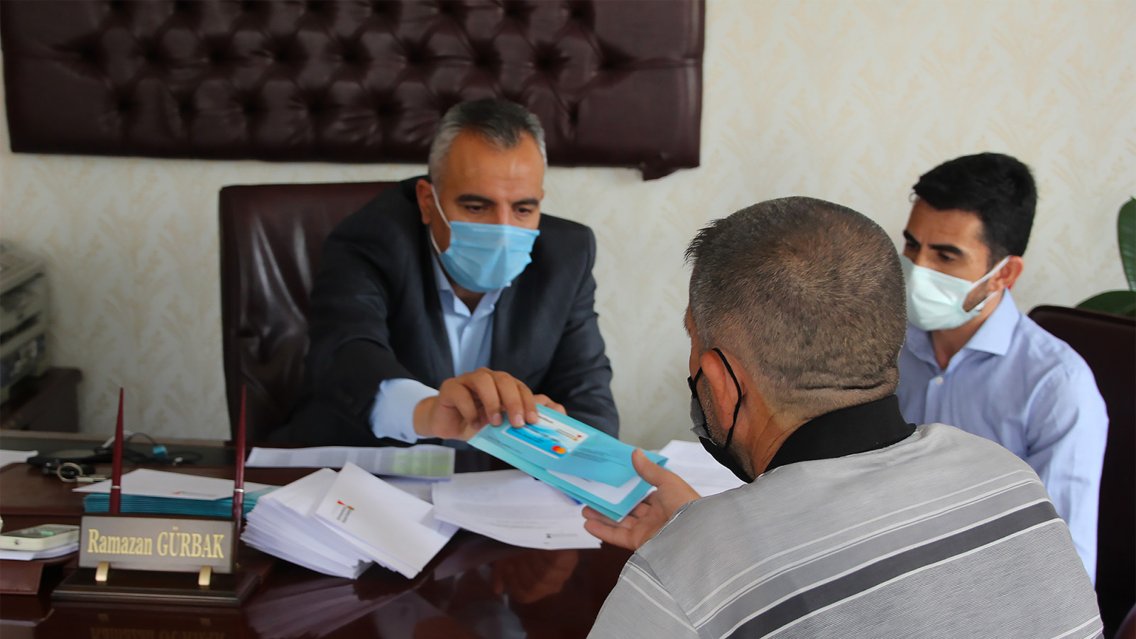 Kahramanmaraş Büyükşehir Belediyesi tarafından ihtiyaç sahibi ailelere için hayata geçirilen Sosyal Destek Kartı projesinde dağıtım büyük ölçüde tamamlandı. Toplamda 30 bin aileye ulaştırılacak kartlar, Sosyal Hizmetler Dairesi Başkanlığı koordinesindeki ekipler nezaretinde muhtarlıklardan dağıtılıyor. Sürdürülen çalışmaları takip eden Büyükşehir Belediyesi meclis üyeleri Fatma Zehra Aslantaş, Ramazan Kibar, Hanifi Toptaş ve Mahmut Toğuz ile muhtarlar projeyi çok beğendiklerini belirtti.