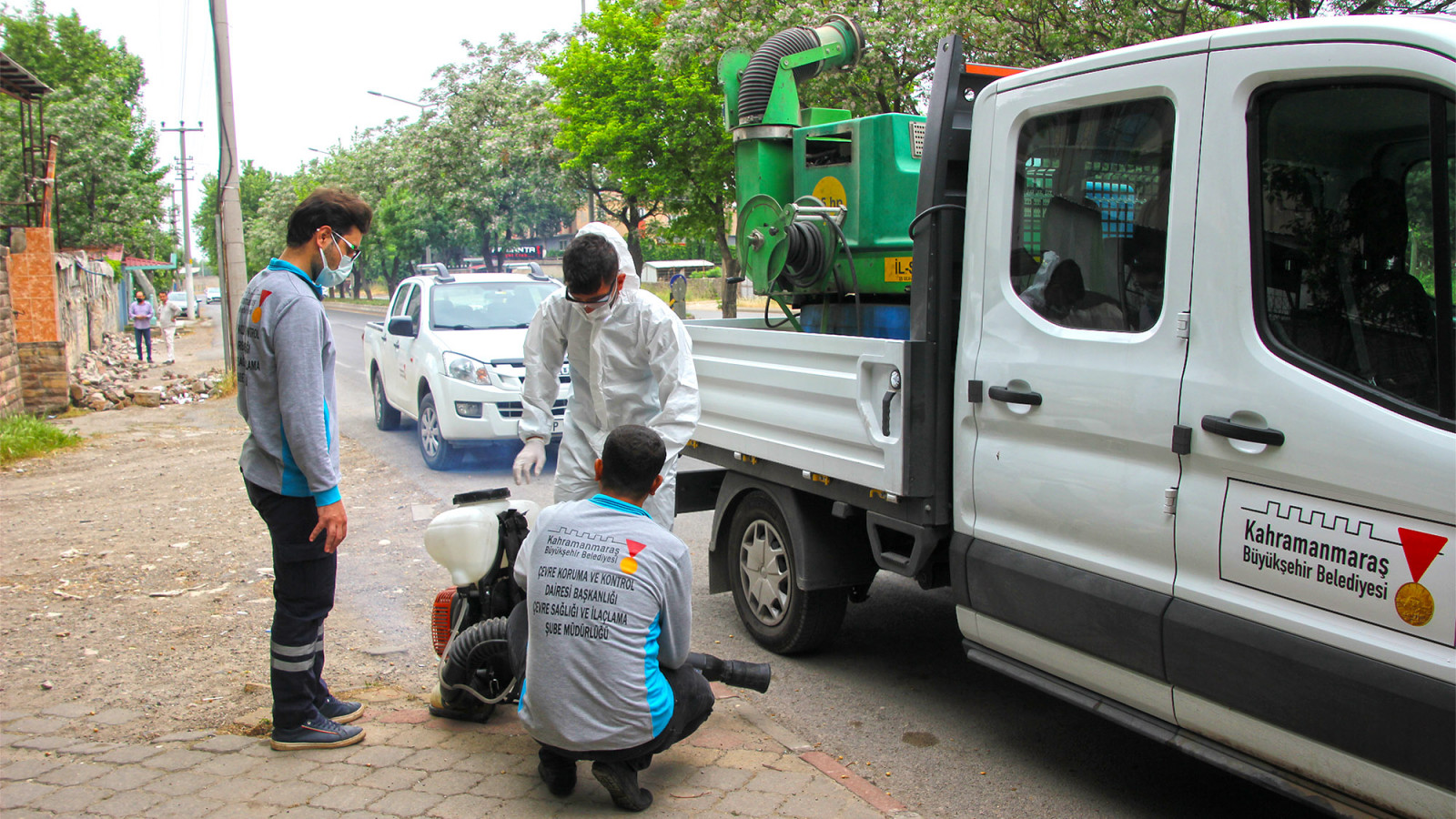 Kahramanmaraş Büyükşehir Belediyesi şehrin muhtelif bölgelerindeki binlerce ağacı ilaçlama çalışmalarıyla zararlılardan koruyor.