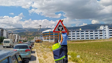 Kahramanmaraş Büyükşehir Belediyesi, Dulkadiroğlu ilçesi Kanuni Mahallesi üzerindeki kavşak çalışmasını tamamlıyor. Arter üzerinde trafik güvenliğini tesis edecek levha ve yol işaretleri uygulamaları sürüyor.