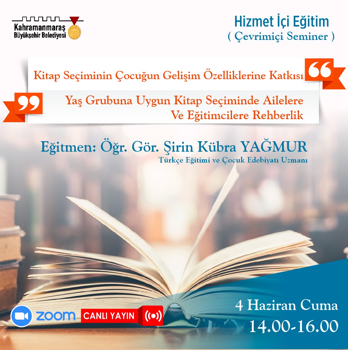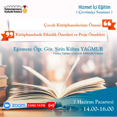 Kahramanmaraş Büyükşehir Belediyesi, personel eğitimleriyle sosyal hizmetlerde standardı yükseltecek adımlar atıyor. Bu kapsamda, Büyükşehir bünyesinde hizmet veren toplam 25 kütüphanenin personel kadrosu çağdaş kütüphanecilik yaklaşımlarını konu eden bir dizi eğitimden geçti. 4 - 7 Haziran tarihlerinde gerçekleştirilen ve üç seminerden oluşan programda, Uzman Eğitimci Öğr. Gör. Şirin Kübra Yağmur tarafından Ailelere, Eğitimcilere ve Kütüphanecilere Rehberlik, Yaş Grubuna Uygun Kitap Seçimi, Etkinlik vue Proje Önerileri başlıklarında eğitim verildi.