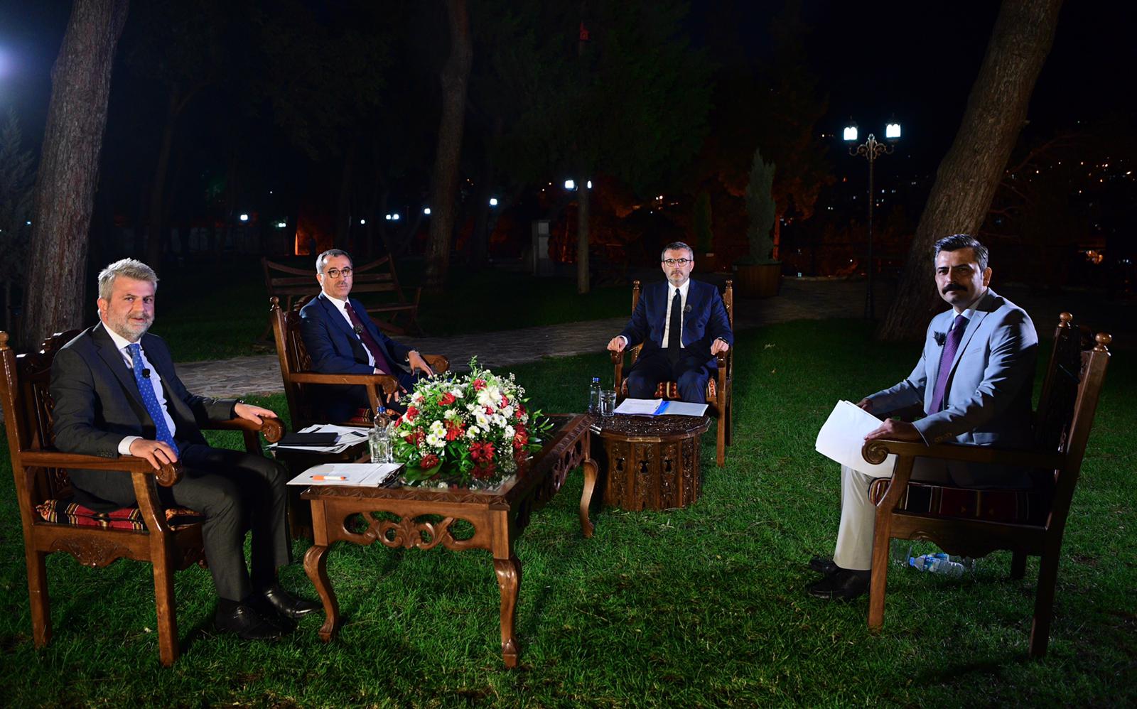 Kahramanmaraş Büyükşehir Belediye Başkanı Hayrettin Güngör, Aksu TV’de yayınlanan “Haber Ötesi” programı özel oturumuna katıldı. AK Parti Grup Başkanvekili Mahir Ünal ve İl Başkanı Fırat Görgel’in de katıldığı program Büyükşehir Belediyesi tarafından restore edilen Tarihi Kale’den canlı yayınlandı. Murat Eğridağ’ın moderatörlüğünde gerçekleşen yayında, şehir genelinde devam eden yatırımlardan, açılışı gerçekleştirilen projelere kadar pek çok konu masaya yatırıldı. Programda konuşan AK Parti Grup Başkanvekili Mahir Ünal: “Kurtuluş mücadelemizin sembol mekanlarından birindeyiz. Kale’ye dair çocukluğumda pek çok anı var. O tahrip olmuş, atıl vaziyette kalmış yapının bugün hamdolsun restorasyonuyla birlikte tarihini yaşatacak bir mekan halini aldığını görüyorum” dedi.