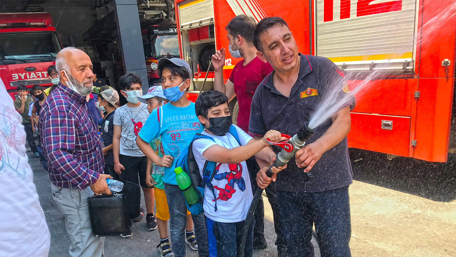 Büyükşehir Belediyesi’ne bağlı İtfaiye Daire Başkanlığı’na gezi düzenleyen Kümged’li miniklere araç, ekipman ve müdahale teknikleri hakkında bilgiler verildi. Alanda yangın söndürme tatbikatı da yapan çocuklar renkli görüntüler oluşturdu.