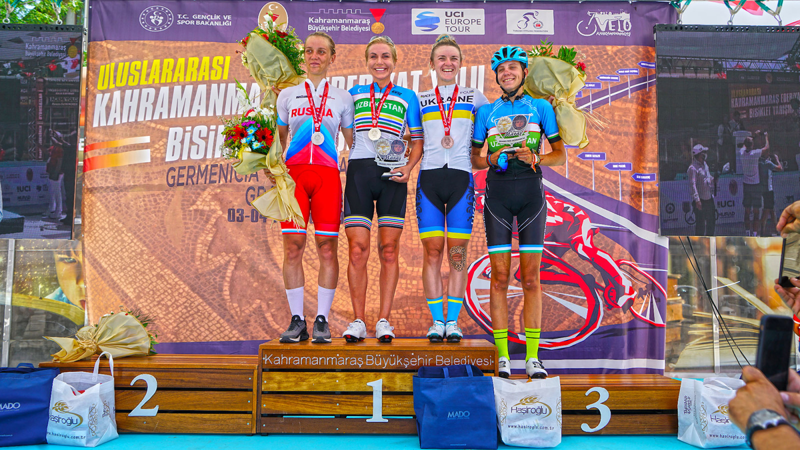 Kahramanmaraş Büyükşehir Belediyesi tarafından düzenlenen Uluslararası Bisiklet Yarışı “Germenicia Grand Prix’te” kadın sporcular zorlu parkuru tamamladı. Toplamda 107 kilometre uzunluğundaki parkurda, ödüller Özbekistan, Rusya ve Ukrayna millilerine gitti.