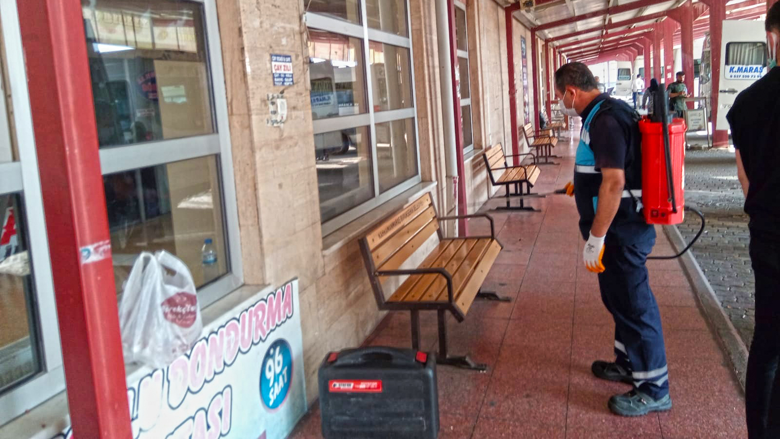 Kahramanmaraş Büyükşehir Belediyesi, pandemiyle mücadele çalışmalarını aralıksız sürdürüyor. Bu kapsamda, Çevre Koruma ve Kontrol Daire Başkanlığı'na bağlı 110 personel ve 54 araç yaklaşan Kurban Bayramı öncesi dezenfeksiyon çalışmalarını hızlandırdı. Kentte yoğunluğun oluşabileceği tüm üstgeçitler, pazar yerleri, ATM'ler, çarşılar, otobüs durakları, banklar, parklar ve diğer sosyal alanlar hummalı çalışmalarla dezenfekte ediliyor. Özellikle bayram haftasının yaklaşmasıyla birlikte hareketlenen terminaller de çalışma gerçekleştirilen adresler arasında. Kentin onlarca noktasında devam eden uygulamalarla birlikte, yoğunluk ile oluşabilecek bulaş riskinin asgari seviyede tutulması hedefleniyor.