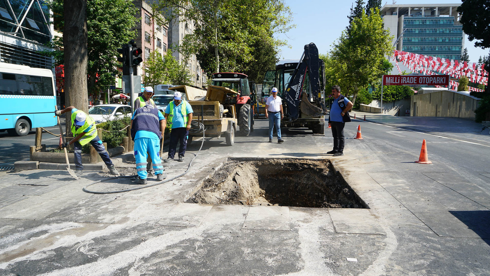 Kahramanmaraş Büyükşehir Belediyesi, hızlı müdahalesiyle önemli bir sorunu anında çözüme kavuşturdu. Sabah saatlerinde kentin merkezi arterlerinden Azerbaycan Bulvarı ile Kuddusi Baba Bulvarı kesişim noktasında çöküntü meydana geldi. Oluşan sorun Büyükşehir ekiplerince fark edilerek süratle önlem alındı. Asfaltta kısmi olarak oluşan çöküntüye müdahale için KASKİ’ye bağlı çok sayıda personel ve araç teyakkuza geçti. Kanalizasyon hattındaki deformasyon sebebiyle oluşan çöküntü gerçekleştirilen tamir çalışmalarıyla engellenmiş oldu. Trafik akışında kesinti olmaksızın yapılan lokal müdahalenin, sıcak asfalt çalışmasıyla beraber öğle saatlerinde tamamlanması hedefleniyor.
