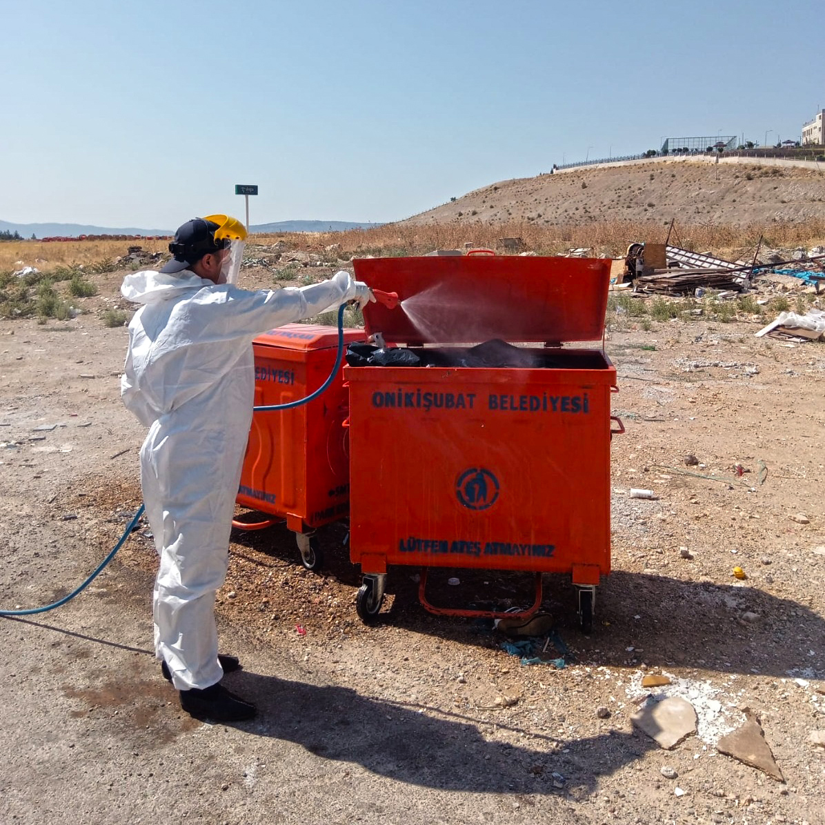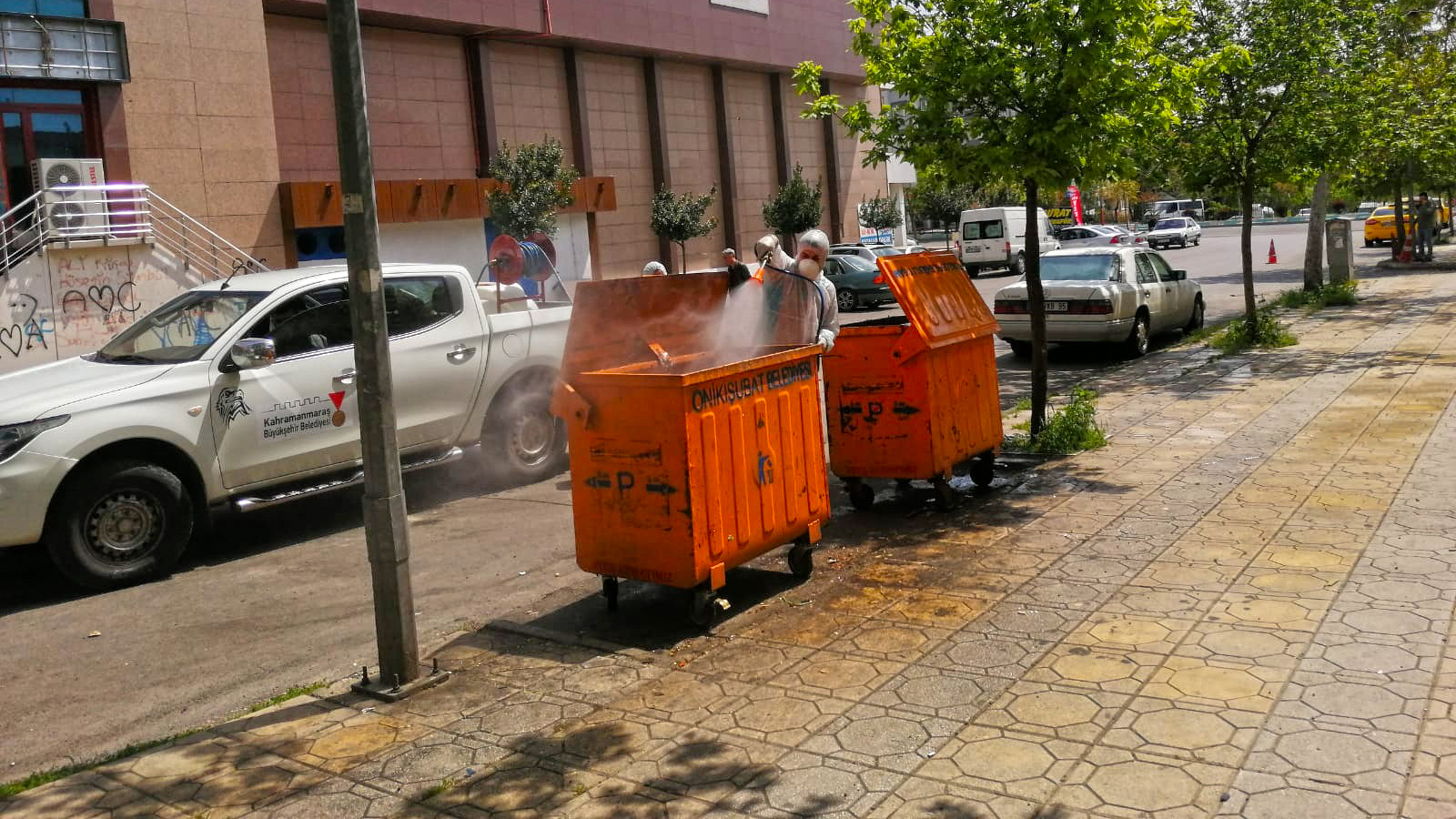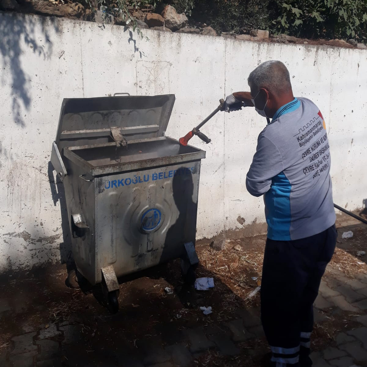 Kahramanmaraş Büyükşehir Belediyesi, 54 araç ve 110 personel ile çöp konteynerlerinden hayvan satış noktalarına kadar tüm alanlarda ilaçlama çalışmalarını sürdürüyor.