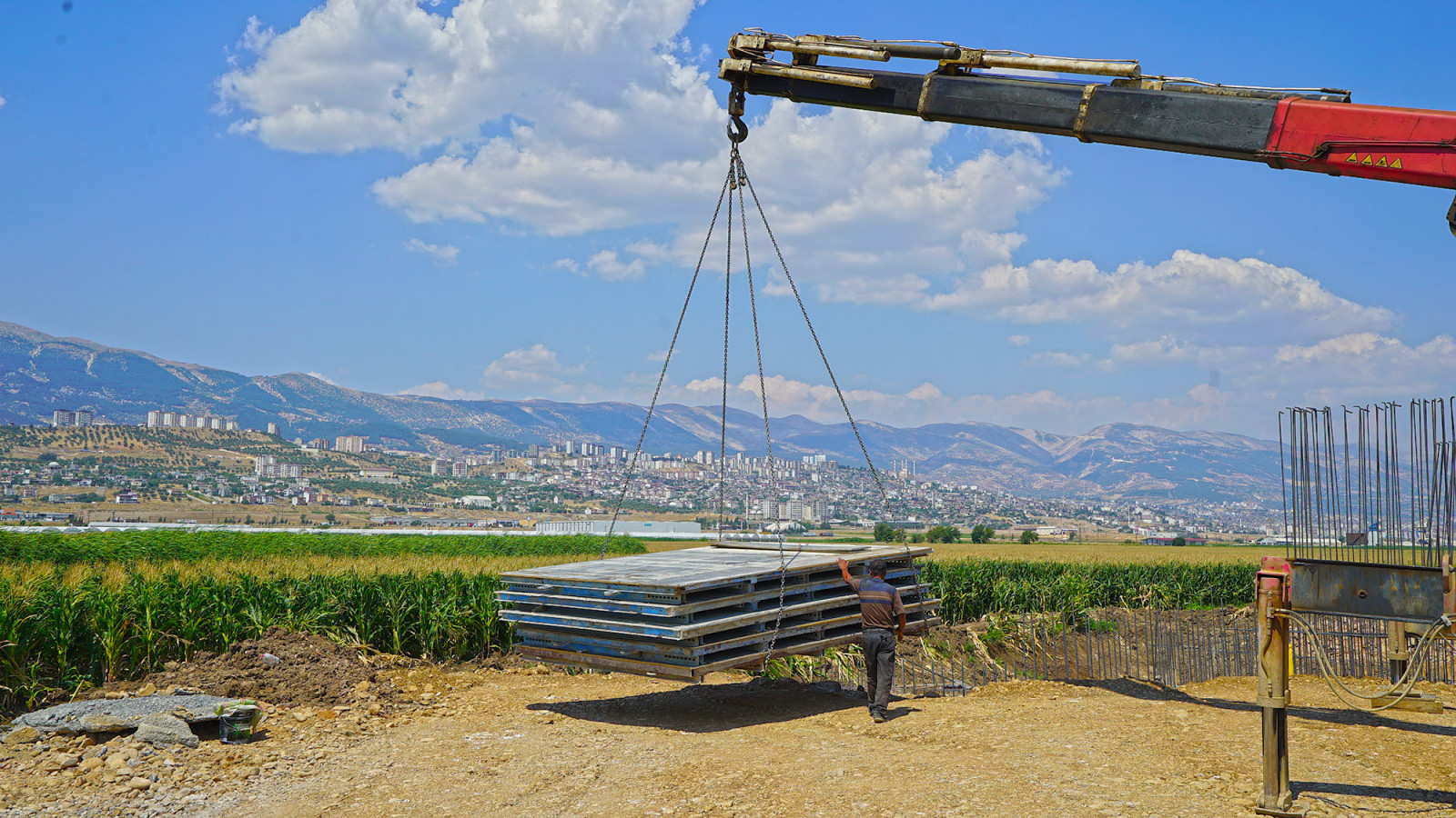 Kahramanmaraş Büyükşehir Belediyesi’nin dev yatırımı Önsen Köprüsü ve Bağlantı Yolları Projesi inşası hızla sürüyor. Geçtiğimiz günlerde temeli atılan ulaşım projesi; sanat yapıları, köprü ve yeni bulvarıyla bir bütün olarak inşa ediliyor. Ağcalı Kavşağı’ndan Önsen Köprüsü’ne kesintisiz ulaşım sağlayacak 4,5 kilometrelik yeni bulvarın ilk etap sıyırma kazıları tamamlanırken, dolgu çalışmaları ise süratle devam ediyor. Ayrıca şantiye sahasında devam eden köprü inşasında ilk etap platform kurulumları için hazırlıklar yapıldı. Toplamda 210 metre uzunluğa sahip olacak yeni köprünün yılın son çeyreği itibariyle yükselmesi hedefleniyor. Yaklaşık 75 Milyon TL yatırımla hayata geçirilecek proje ile Önsen mevkiinden şehir merkezine ulaşım yarı yarıya kısalacak.