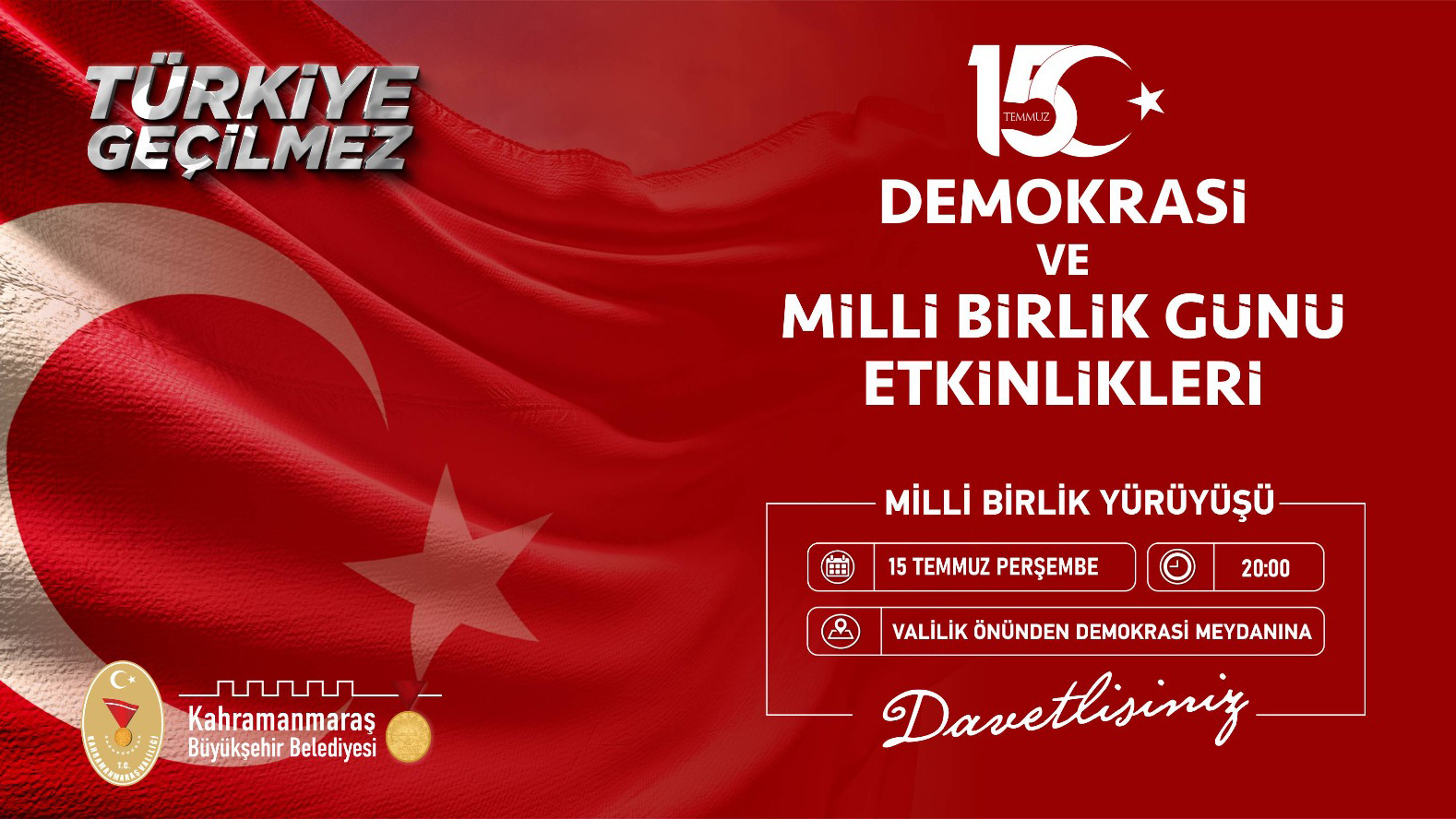 Kahramanmaraş Büyükşehir Belediyesi’nin katkılarıyla demokrasi nöbetinin yıldönümünde düzenlenecek etkinlikler başlıyor. 15 Temmuz Demokrasi ve Milli Birlik Günü çerçevesinde yapılacak programlara tüm vatandaşlar katılabilecek. Ülke genelinde gerçekleşen demokrasi mücadelesinin anılacağı tarihi günün yıldönümünde; resim sergisi, konferanslar, konserler, ziyaret ve yürüyüş etkinlikleriyle hatıralar canlandırılacak. Valilik önünden Demokrasi Meydanı’na yapılacak “Milli Birlik Yürüyüşü” ise yarın saat 20.00’da gerçekleştirilecek. Büyükşehir Belediyesi’nden yapılan açıklamada, “15 Temmuz Perşembe günü, Milli Birlik Yürüyüşü gerçekleştirilecektir. 20.00’da Valilik önünden başlayacak programımıza tüm hemşehrilerimiz davetlidir” denildi.