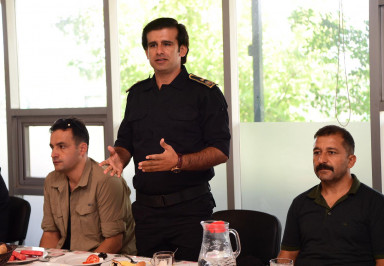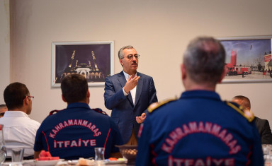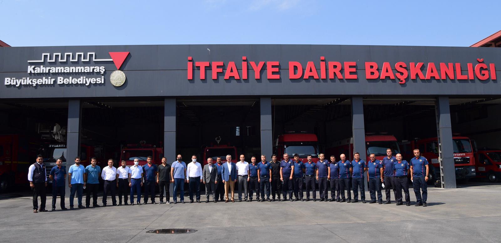 Kahramanmaraş Büyükşehir Belediye Başkanı Hayrettin Güngör, İtfaiye Daire Başkanlığı’nda çalışanlar ile bir araya geldi. AK Parti İl Başkan Yardımcısı Ali Köfte’nin de katıldığı ziyarette ekiplerle bir süre sohbet eden Başkan Güngör, şehir içinde ve dışında gösterdikleri başarılar dolayısıyla itfaiye personeline tebriklerini iletti. Yeni hizmet birimlerine ilişkin değerlendirmelerde bulunan Güngör açıklamasında, “Bugün İtfaiye teşkilatımızla buluştuk. İtfaiyemizin her zaman hazır olması için altyapı, insan kaynakları, araç gereç bunların değerlendirmesini yaptık. Şehrimizde yangın noktasında alınabilecek tüm önlemleri alıyoruz, almayı da sürdüreceğiz” diye konuştu.