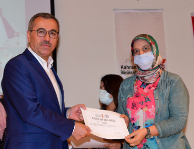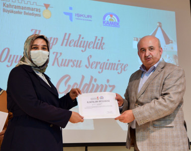 Konuşmasının devamında üretilen projelerin kent için önemli kaynaklar olarak döndüğünü ifade eden Başkan Hayrettin Güngör, “Uluslararası kuruluşlarla işbirliği yapmak önemli. Kahramanmaraş Büyükşehir Belediyesi olarak, yaptığımız projelerle yaklaşık 2 yıllık süre zarfında uluslararası kurum kuruluşlardan aldığımız destek ve hibe miktarı 1.5 Milyar TL’ye yaklaştı. Sadece Kuveyt Fonu’ndan tamamen hibe 10 Milyon Dolar aldık. Geçtiğimiz günlerde içmesuyu, kanalizasyon, arıtma ve atık bertarafı için Avrupa Birliği mülteciler fonundan 1 Milyar TL kredi ve hibe aldık. Bu kaynaklarla şehrimizde ihtiyacımız olan alt ve üstyapı projelerini finanse etmiş olacağız” diye konuştu. Başkan Güngör’ün konuşmalarının ardından kursiyerlere sertifikaları teslim edildi. Düzenlenen törenin sonrasında kurs dönemi boyunca imalatı yapılan oyuncaklardan oluşan serginin açılışı gerçekleştirildi.